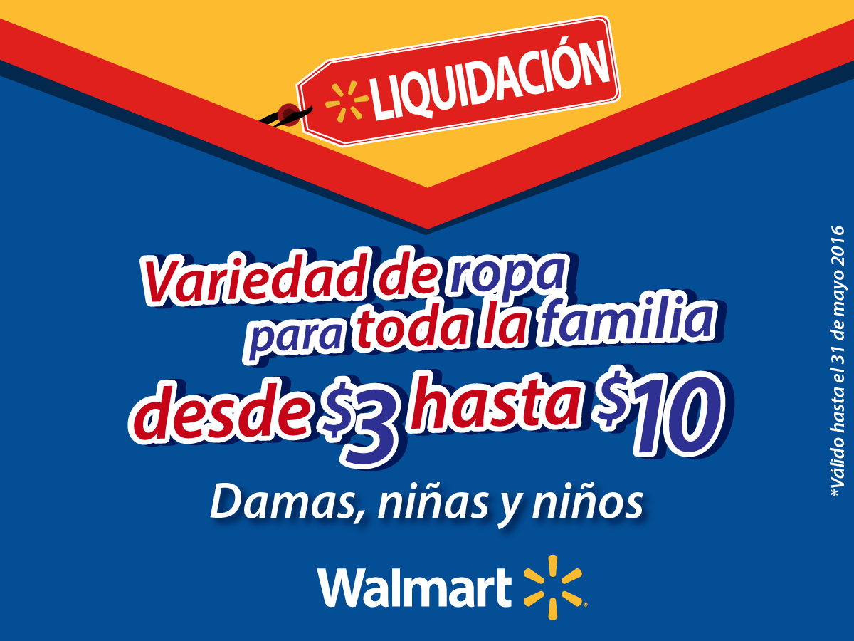 WALMART liquidacion de ropa para toda la familia hasta 31 de mayo 2016.