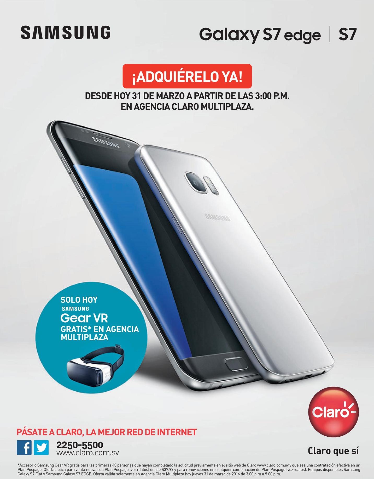 CLARO inicia hoy venta del nuevo smartphone SAMSUNG S7 edge.
