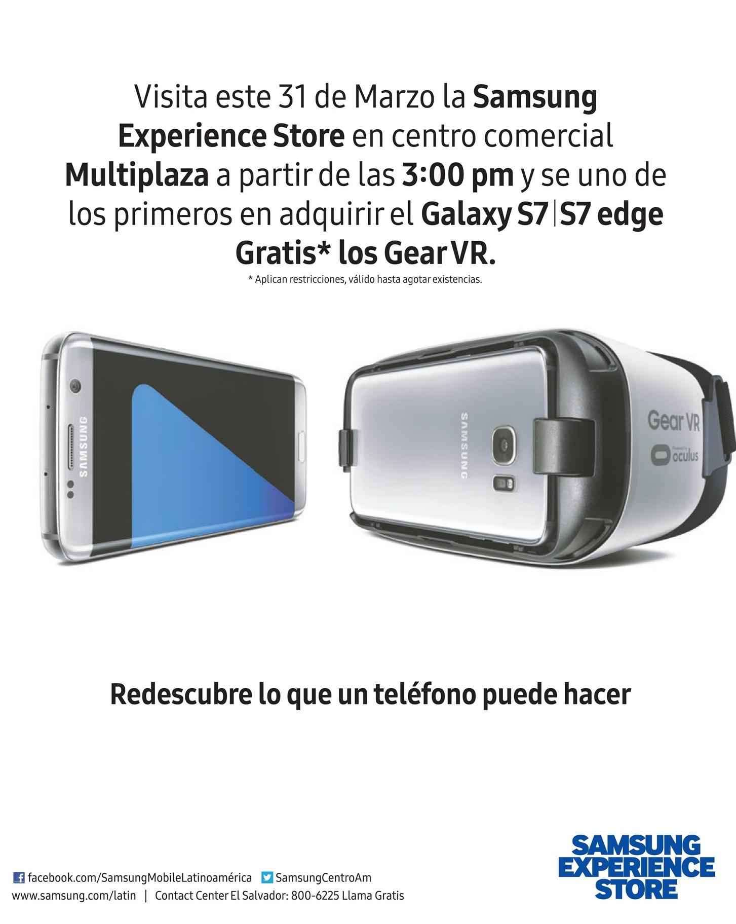 SAMSUMG experience store elsalvador MULTIPLAZA. SIMAN ofertas en producto para vivir el futbol del clasico. Si pensas ir por una bebida este dia al COFFEE CUP mira esta promo. Supermercado de telas en el salvador ZONA libre. TIGO smart presenta el NUEVO samsung galaxy S7. TODAY night sales SAMSUNG S7 edge con realidad virtual.