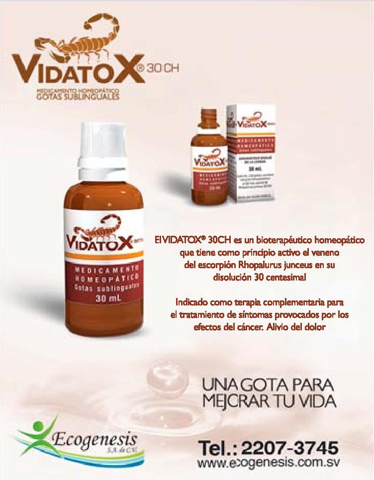 VIDATOX es un bioterapeutico homeopatico para sintomas del cancer y alivio de dolor.