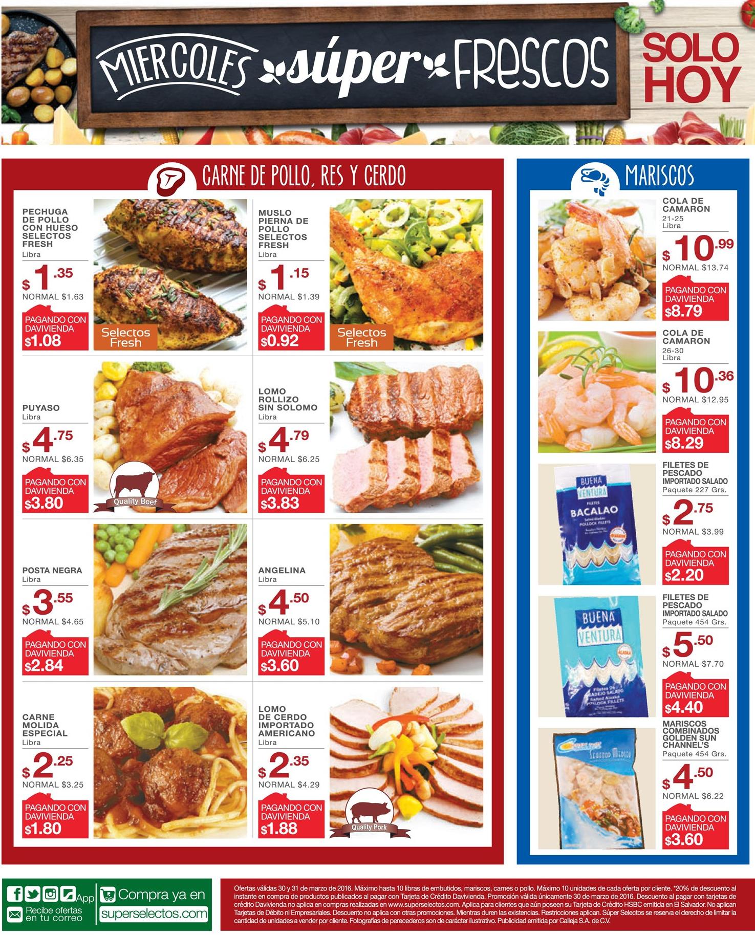 MIercoles FRESCOS selectos carnes pollo mariscos cerdo – 30mar16.