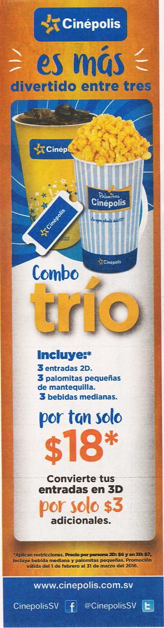 «WALMART Regalitos y sorpresas para el dia del amor y la amistad 2016» «AMOR verdadero para regalar este 14 de febrero 2016 gracias a PRADO» «Apartamento para regalar este 14 de febrero 2016» «CANDY BAR selection for happy san valentine 2016» «Celebrando con descuento el 14 de febrero 2016» «CENA romantica 14 de febrero con 30 off gracias a SCOTIABANK» «COMBO trio de cinepolis para san valentin 2016» «DEADPOOL HOY gran estreno de la pelicula XD xtreme cinema digital» «Disfruta en pareja 2×1 en aros OPTICA la curacao» «Festival de celulares en WALMART el salvador este finde – 12feb16» «Festival de aceite ORISOL ofertas la despensa de don juan – 12feb16» «Fin de semana de descuentos en ropa de moda – Prisma MOda – 12feb16» «FREUND el salvador promociones el lamparas LED revolucion philips» «LA CURACAO Toda la linea de electrodomesticos blancos y grises en promocion – 12feb16» «Love connection VALETINES gift for geeks» «OFERTAS ANDROID TV con mas mejores marcas y estilos» «Ofertas de llantas en WALMART car deals new models TIRES pirelli» «Pastel suizo de chocolate con fresas SNA MARTIN ofertas de san valentin 2016» «REMINTONG Pareja indispensable para arreglar tu cabello todos los dias» «SUBWAY EXPRESS servicio a domicilio el salvador» «Tarifas especial en el mes del amor VECA AIRLINES via banco promerica» «Ven a saborear las ofertas y promociones de la maxi despensa»