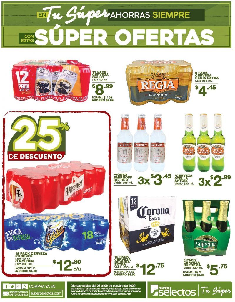 ¡Aprovecha estas #MegaOfertas en #TuSúper más cercano!Ofertas válidas 3 y 4 de octubre de 2020. Aplica por compras de $5 en productos generales. Máximo 2 promociones de cada oferta por cliente, es decir 4 promociones en total en ofertas del 40%. *Máximo 1 promoción de 2×1 de cada oferta por cliente, es decir 7 promociones en total de esta publicación. Súper Selectos se reserva el derecho de limitar la cantidad de unidades a vender por cliente. Mientras duren existencias. Restricciones aplican.