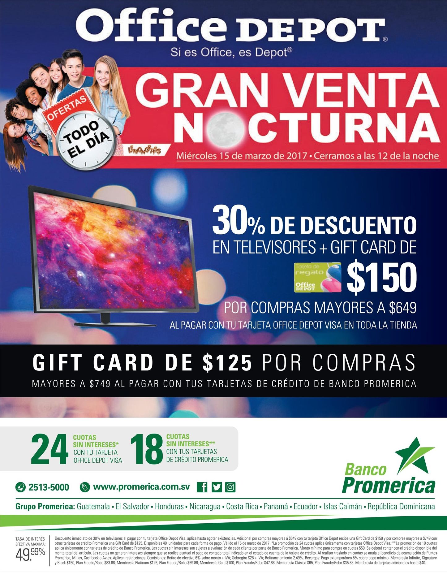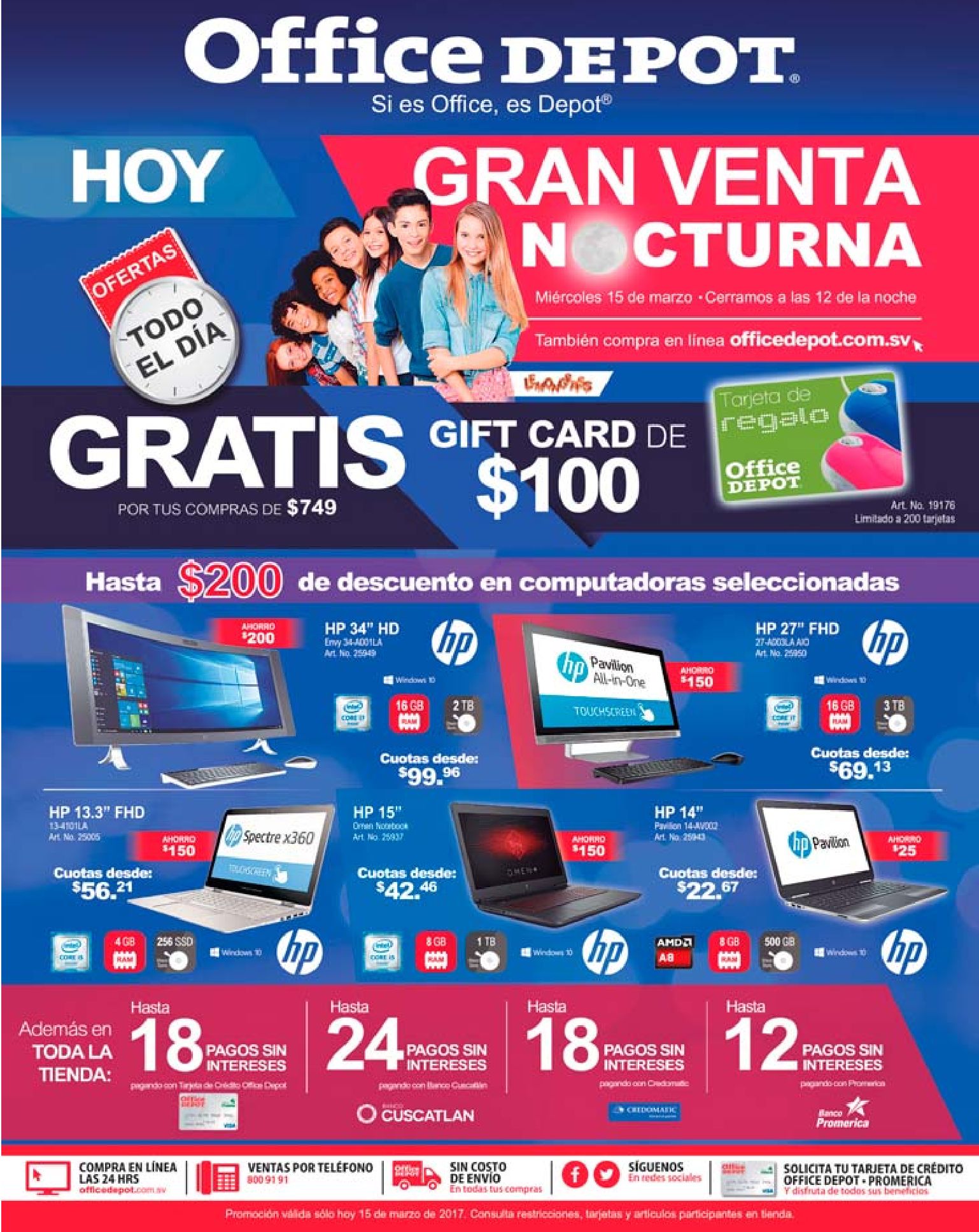Solo durante la Gran Venta Nocturna tenemos 20% de descuento en televisores, tablets y más. #SiEsOfficeEsDepot * Consulta participantes. Descuento 20 off en televisores venta nocturna hasta 200 dolares de descuento al compar pc portatil Descuento en consumibles de oficina hasta 50 off en office depot furniture for offices Descuento OFFICE DEPOT trituradoras FELLOWES Quienes compran en office depot el salvador. GRAN venta nocturna celulares y tablets 2017