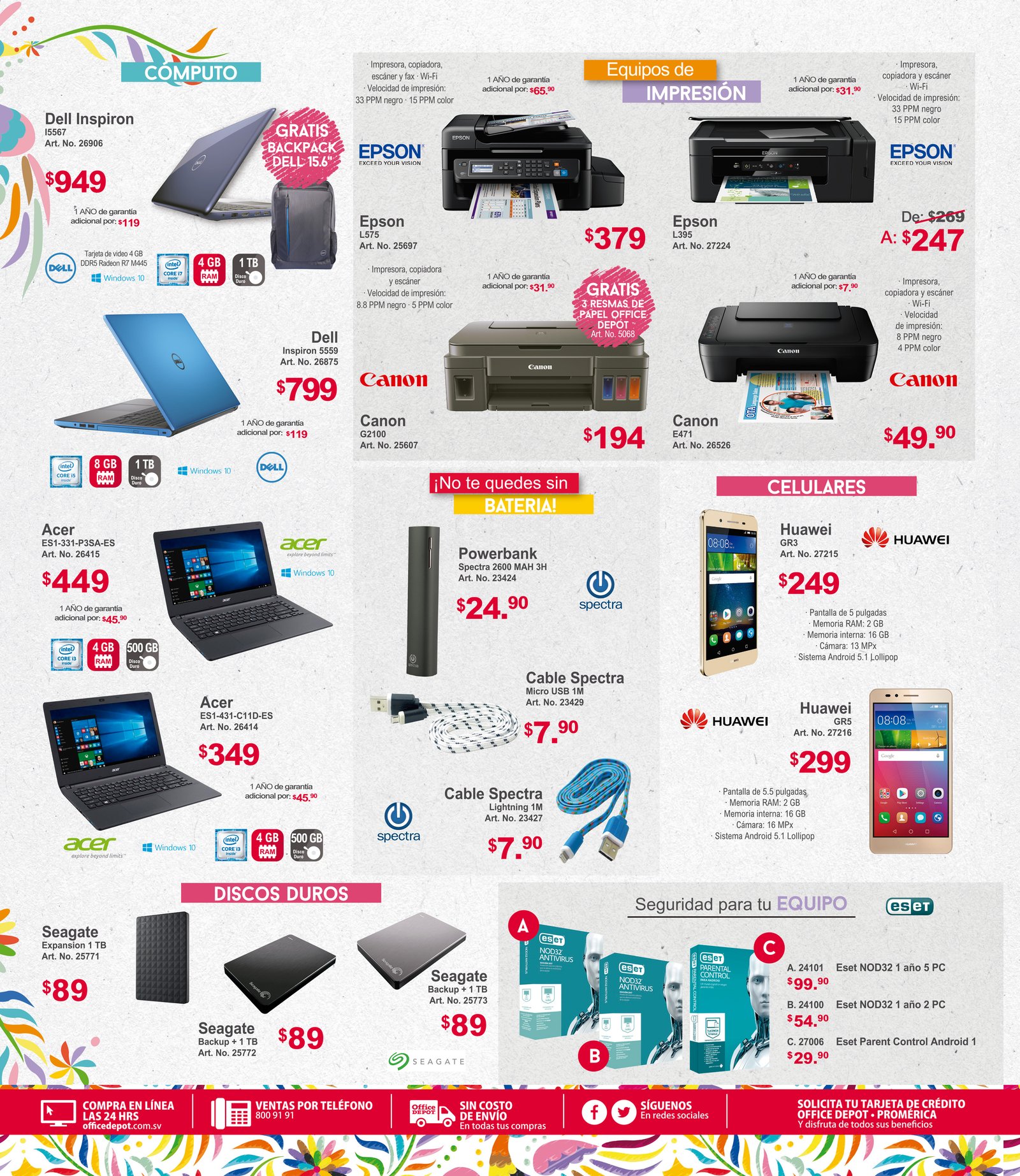 Siempre estarás conectado con tu celular Huawei, encuéntralo en promoción durante el mes de mayo. ¡Queremos celebrar un año más contigo! Por eso tenemos estas promociones exclusivas hasta 31 de mayo de 2017 *Consulta disponibilidad en tienda u online: * ¡Completmenta tu compra! Llévate en promoción tu HP y Laptop Dell. Además del antivirus que también tiene descuento, elige el que más te acomode.