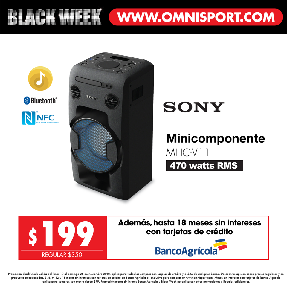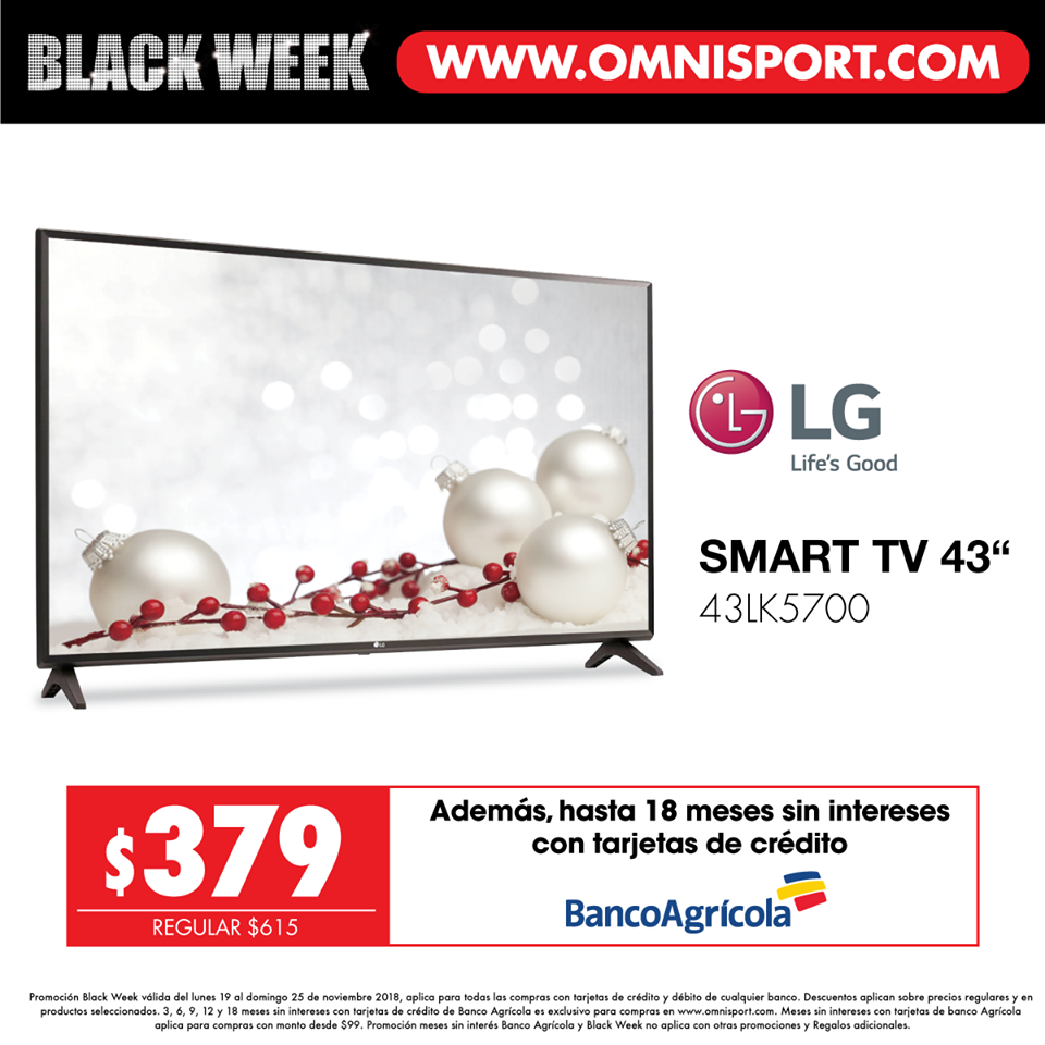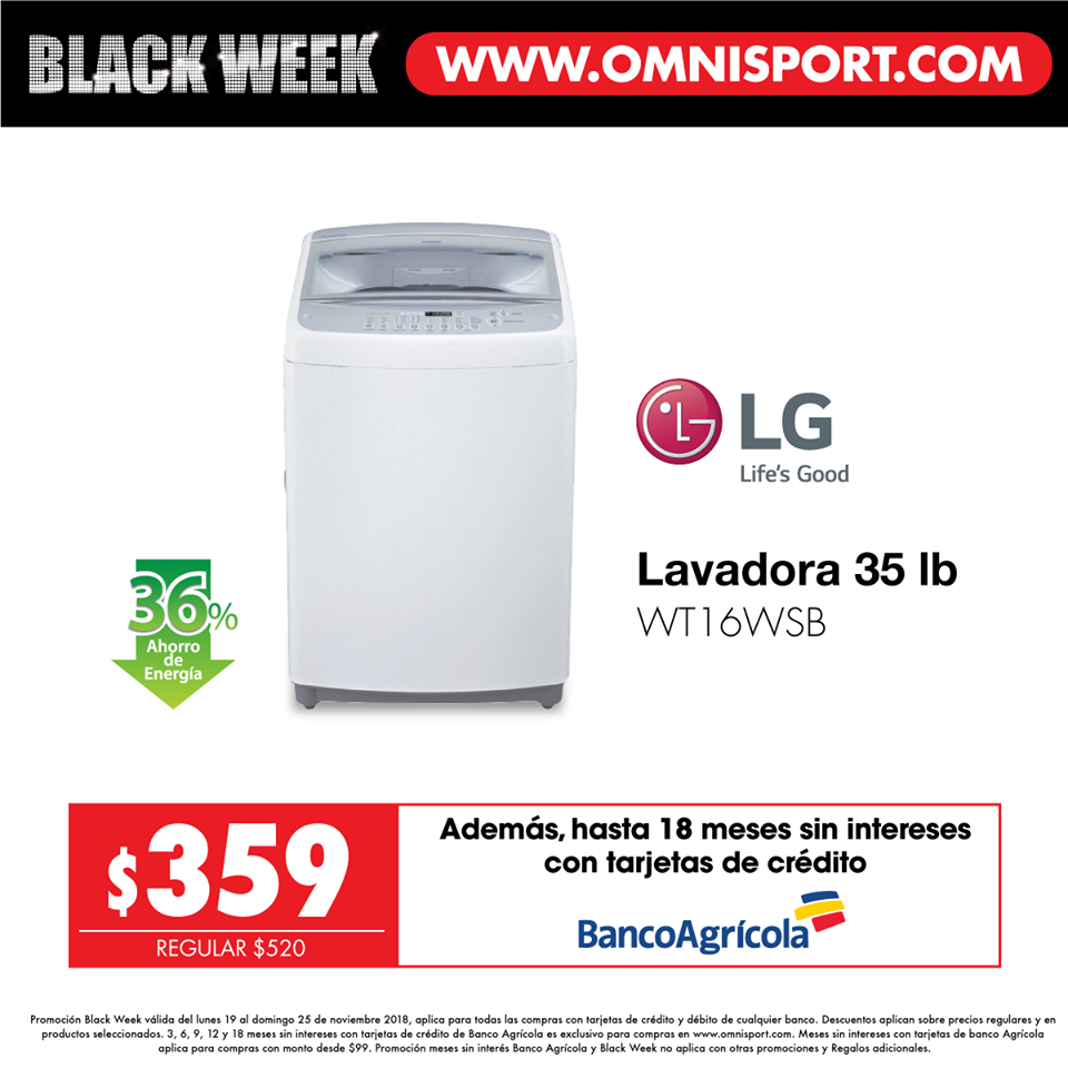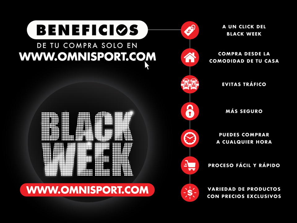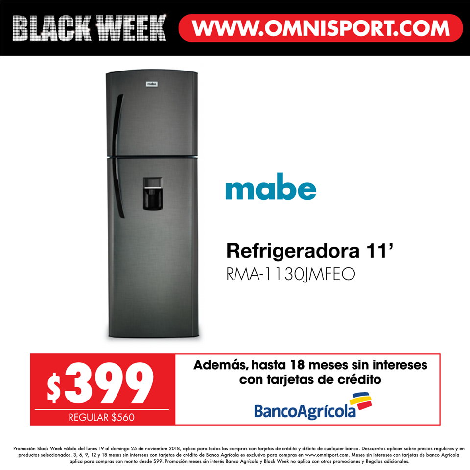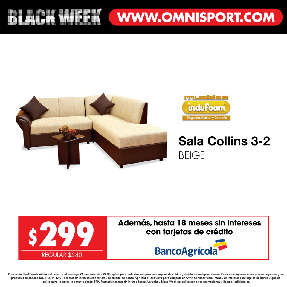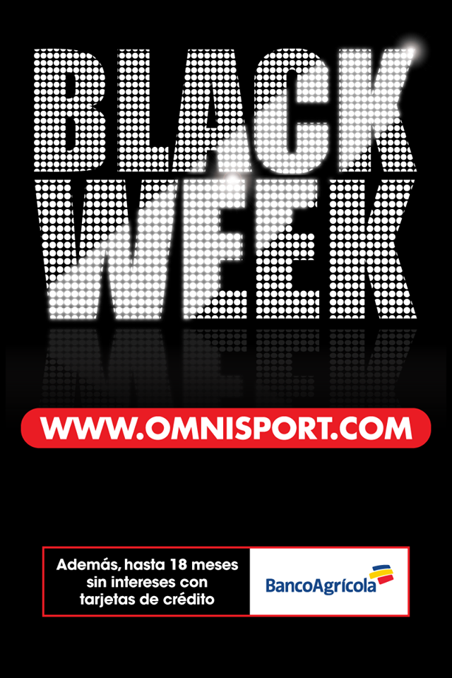 No te pierdas el Black Week de Omnisport el salvador del lunes 19 al domingo 25 de noviembre hasta con un 65% de descuento en muebles, línea blanca y más. Ingresa a www. omnisport .com y paga con tarjetas de débito o crédito de cualquier banco, o hasta 18 meses sin intereses con Banco Agrícola. ????????¡El Black Week ya está aquí!