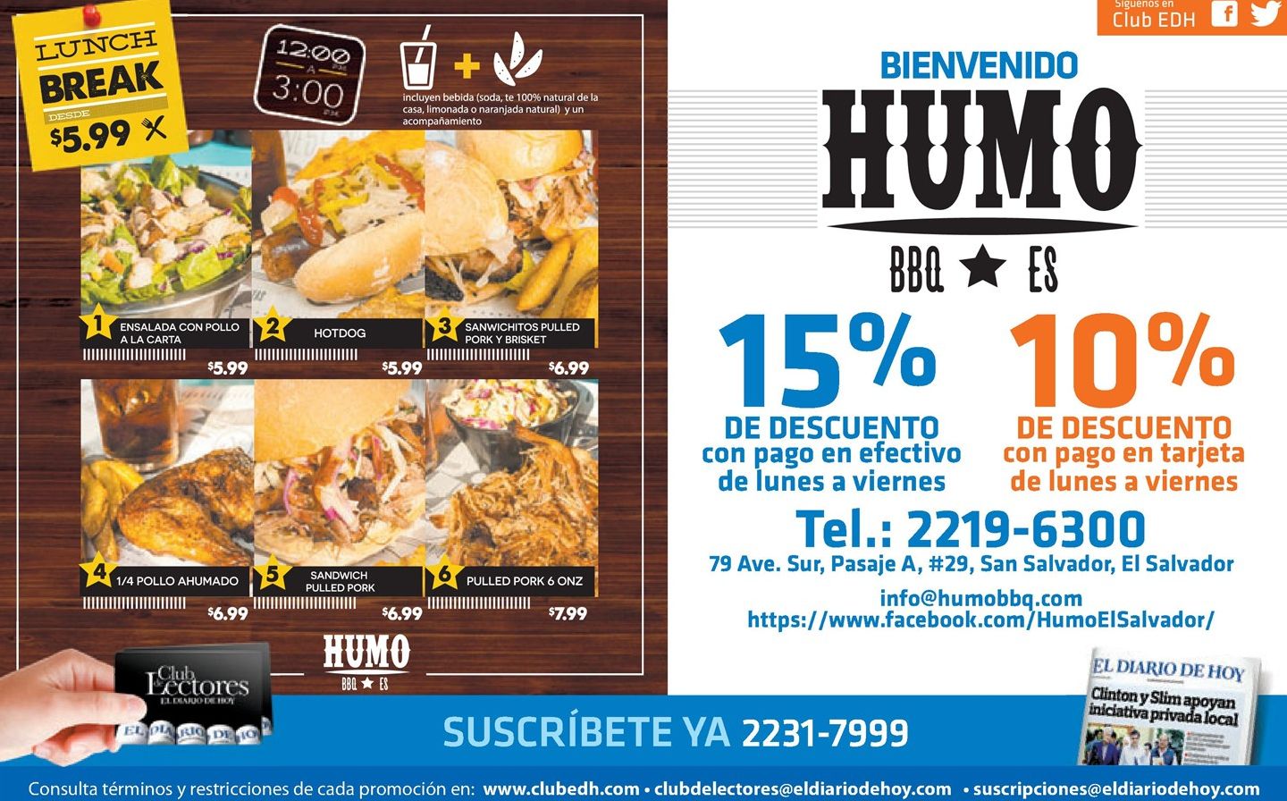 Resturante HUMO elsalvador promocion LUNCH break desde 5_99 de dolar