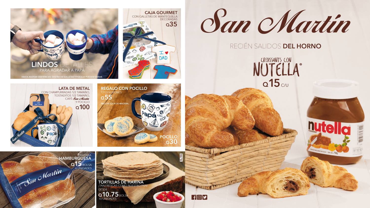 En este mes del PADRE 2016 Panadería San Martín, presenta su coleccion de dulces detalles de NUTELLA for DAD. Para todos los papis amantes del chocolate y los buenos postres aqui esta estan Lindos detalles para PAPA pocillos para cafe, Panaderia SAN MARTIN especialidades con nutella Deliciosas combinacion san martin bakery choco chips. croissants con nutella panaderia san martin