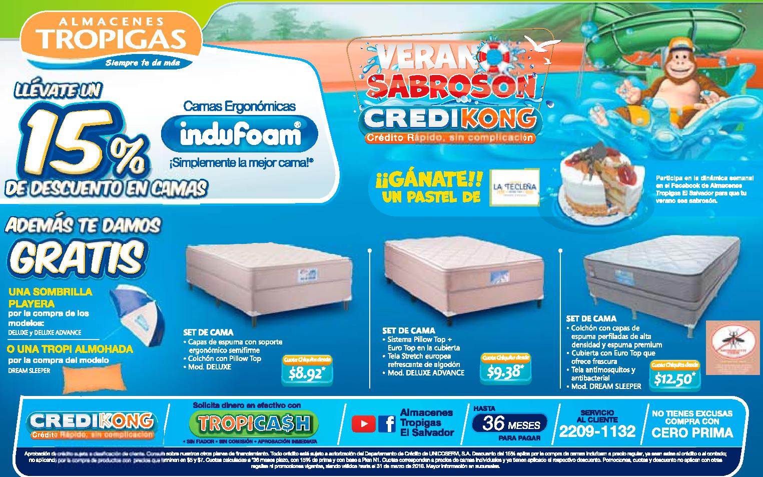 camas con 15 off en almacenes tropigas de elsalvador – celebra ahora viernes ST PAtRICK DAY en BENNIGANS.