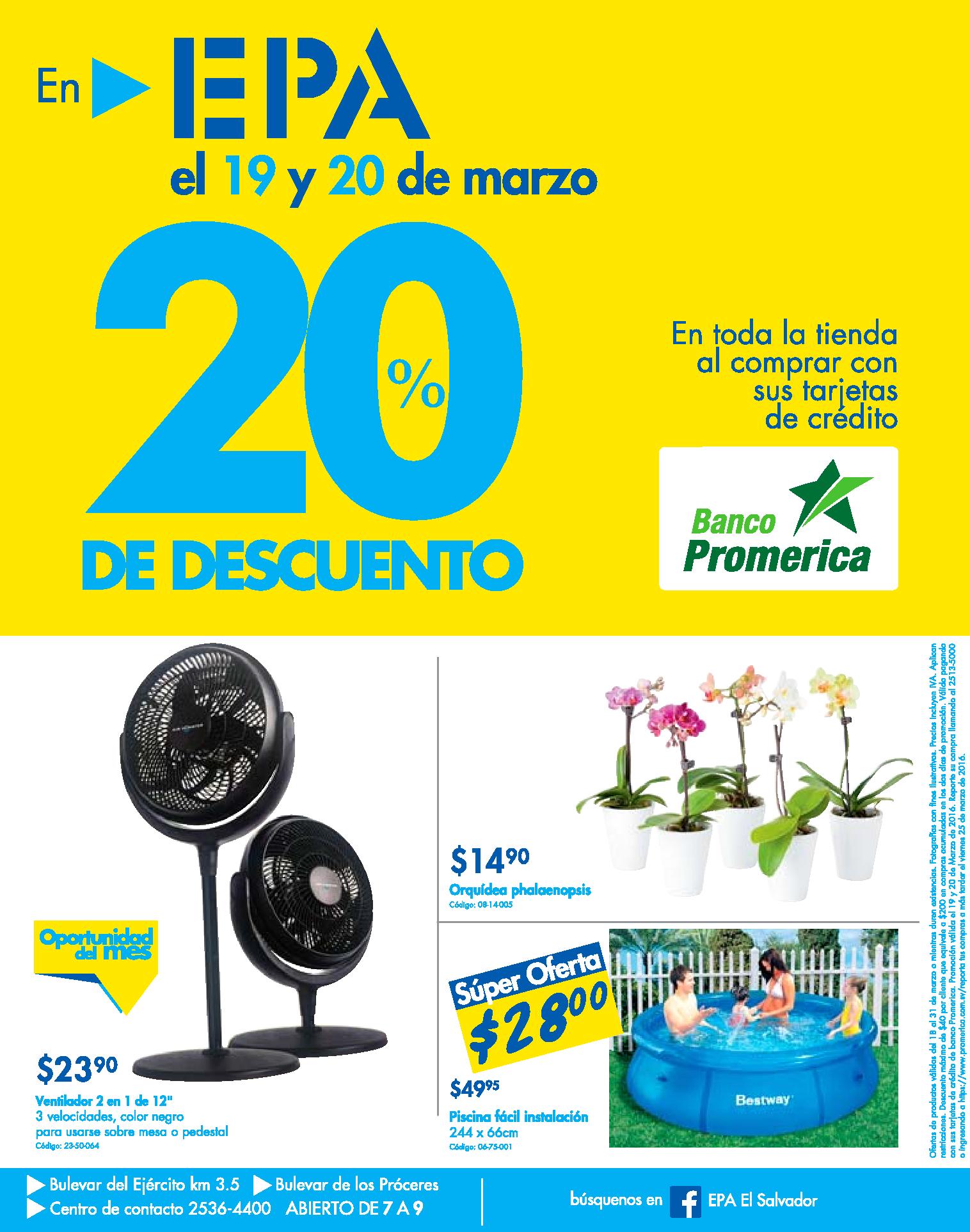FIN De SEMANA descuentos 20 off en ferreteria EPA gracias a banco promerica.