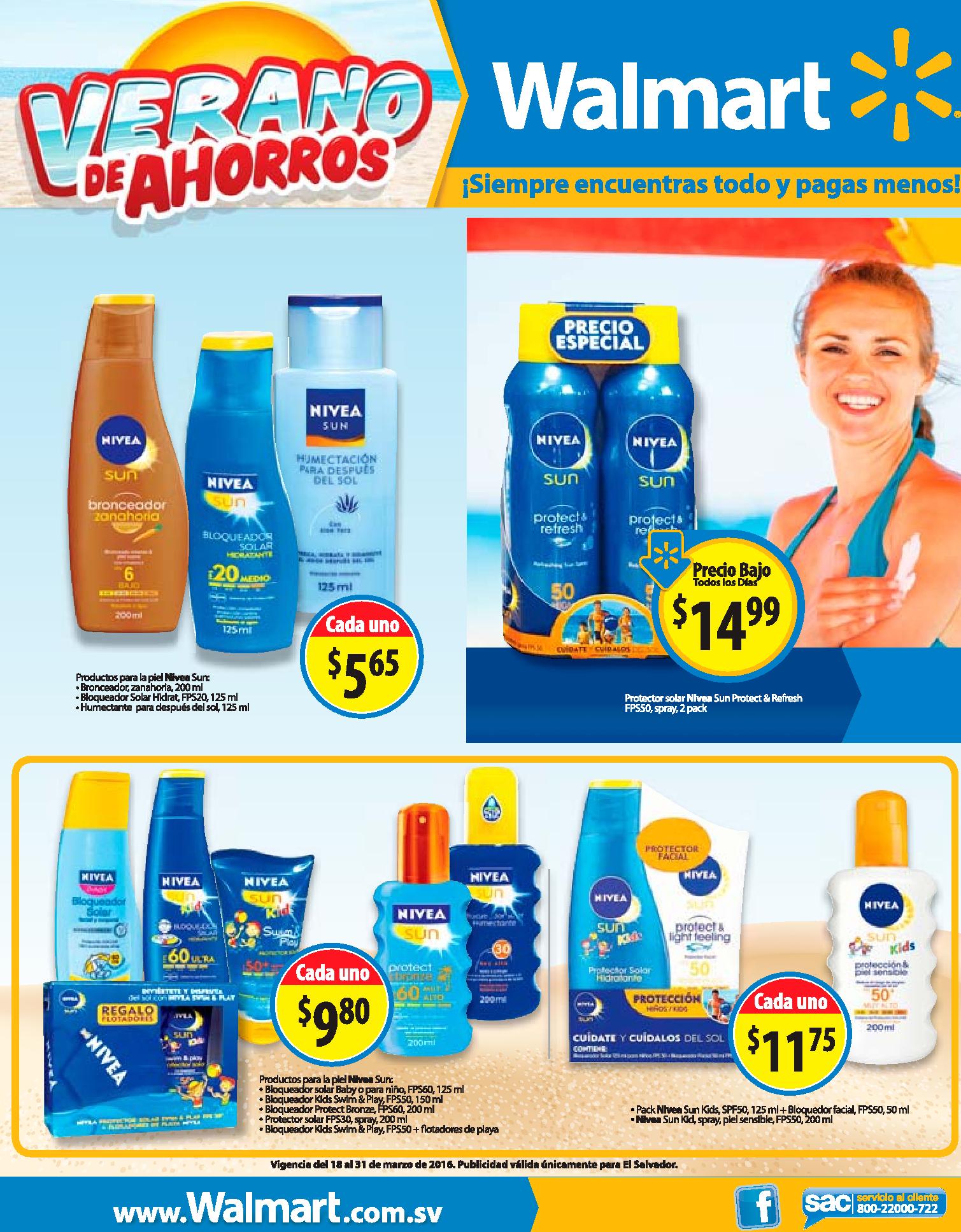 WALMART ofertas en Proteccion y cuidado de la piel en la playa.