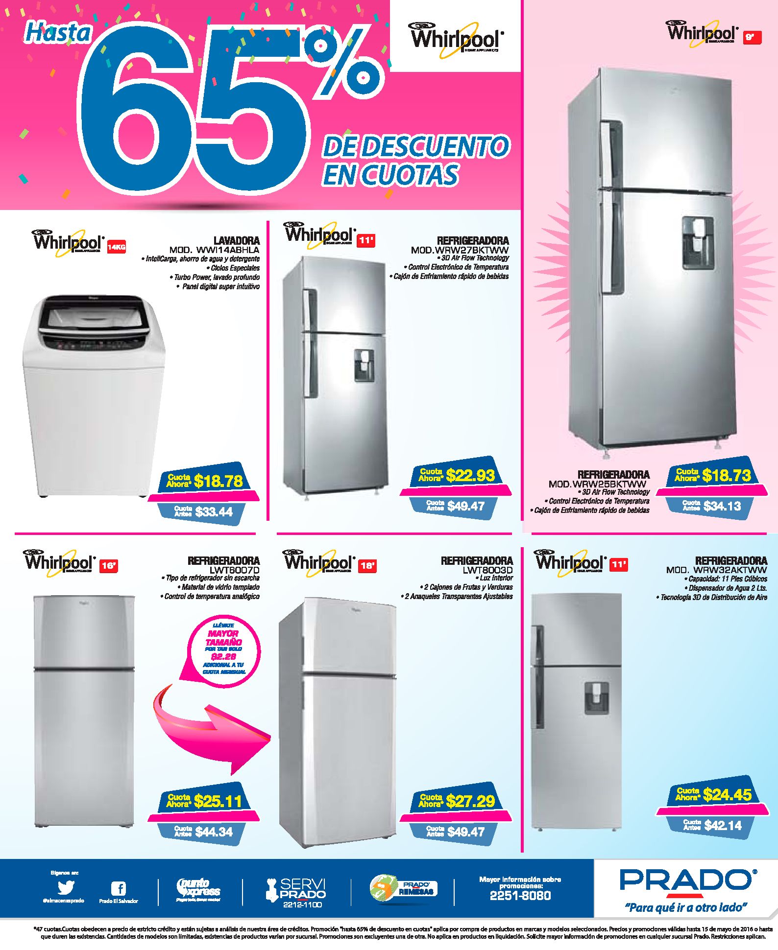 Refrigeradores WHIRPOOL con descuentos en el mes de mayo 2016.