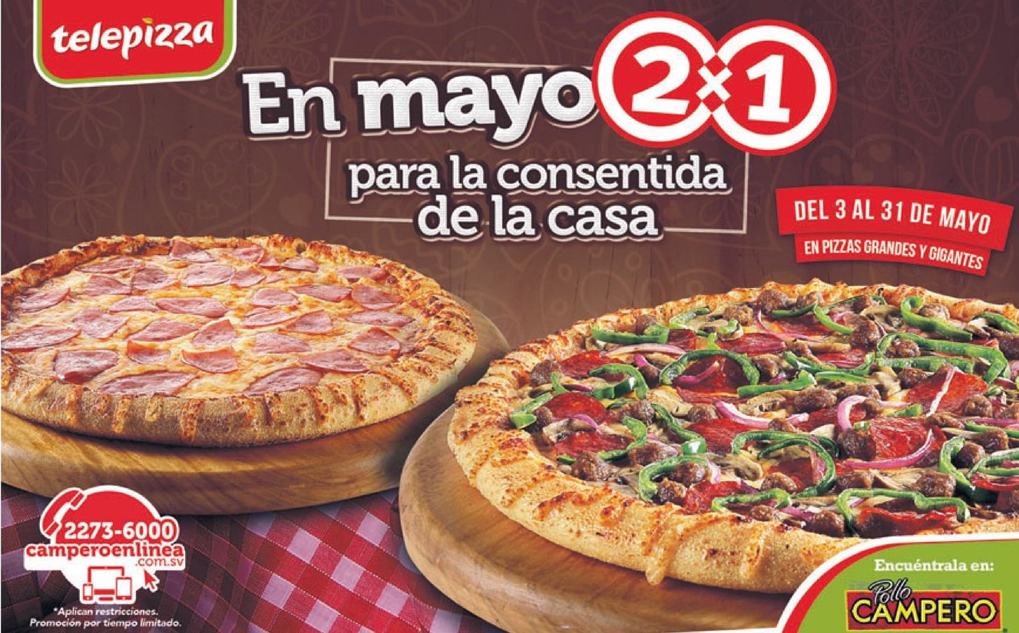 Todo mayo 2016 recuerda TELEPIZZ al 2×1.