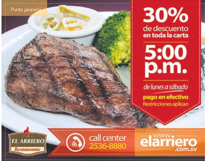 Menu a la carta el arriero con 30 off de descuento