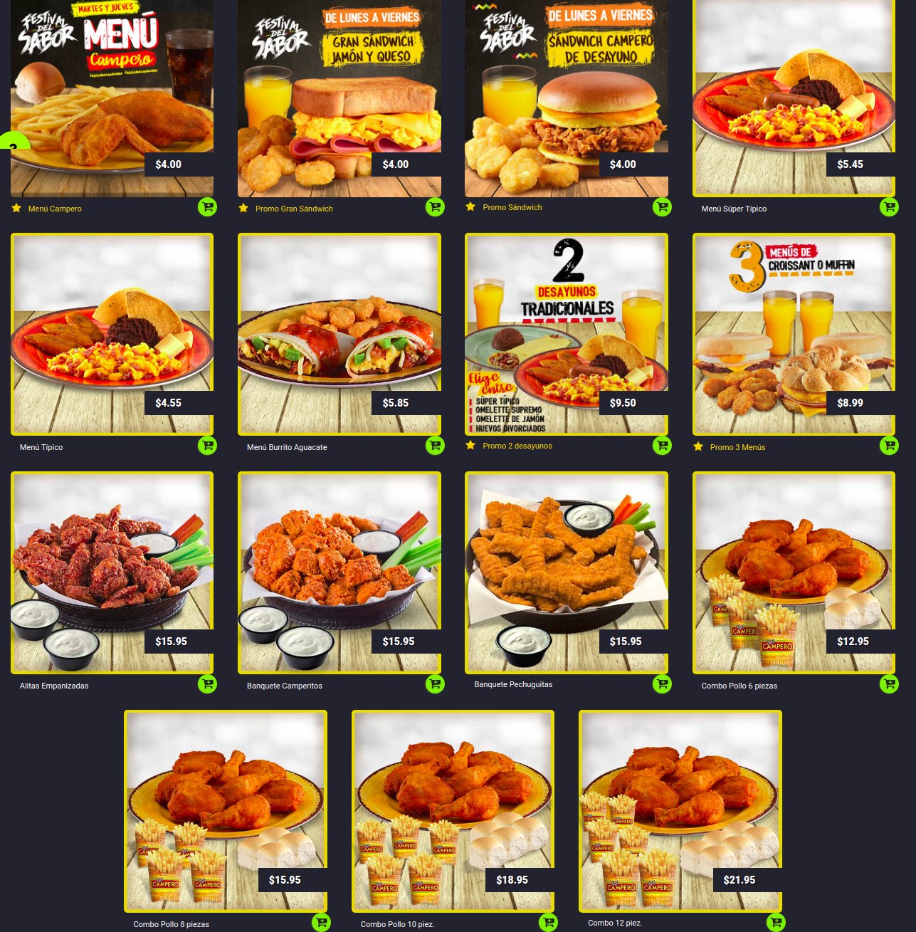 ¡Para cada día de la semana un sabor diferente! Elige tu favorito de lunes a viernes, sólo por tiempo limitado. Para iniciar tu dia Disfruta del sabor Campero con el Gran Sándwich de Jamón y Queso. ¡No te quedes con las ganas! Promoción válida para pedidos en línea. ???? Al que madruga, disfruta de nuestro Sándwich Extra Crujiente como un verdadero campeón a solo $4 de lunes a viernes. #FestivalDelSabor