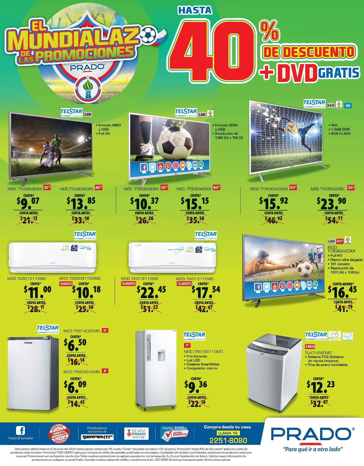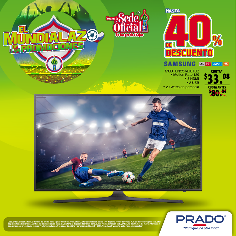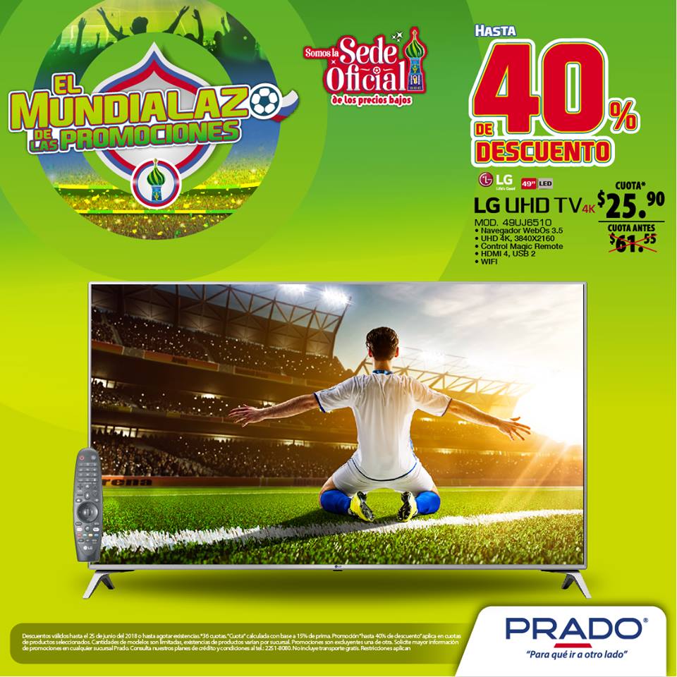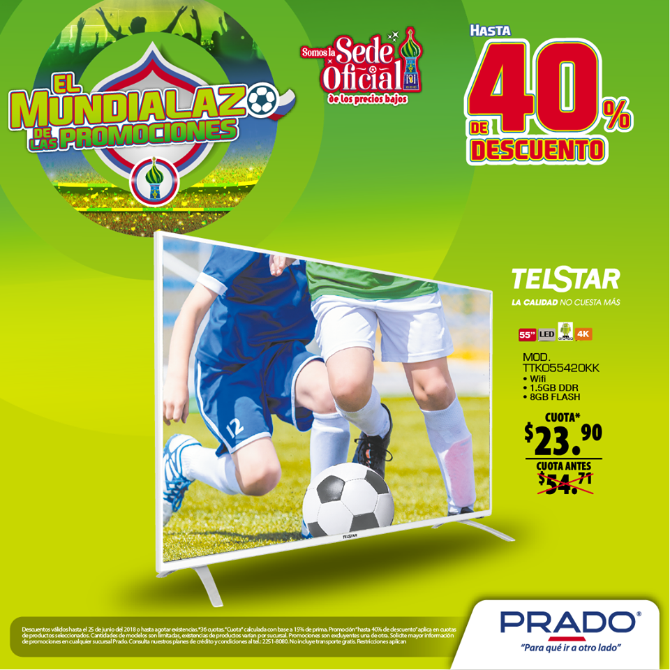 ¡Llegó a almacenes #PRADO el salvador el Mundialazo de las Promociones! ????⚽ Ven a la sede oficial de los Precios Bajos y llévate hasta 40% de descuento en Pantalllas. ????????️ Visítanos o llámanos al 2251-8080.