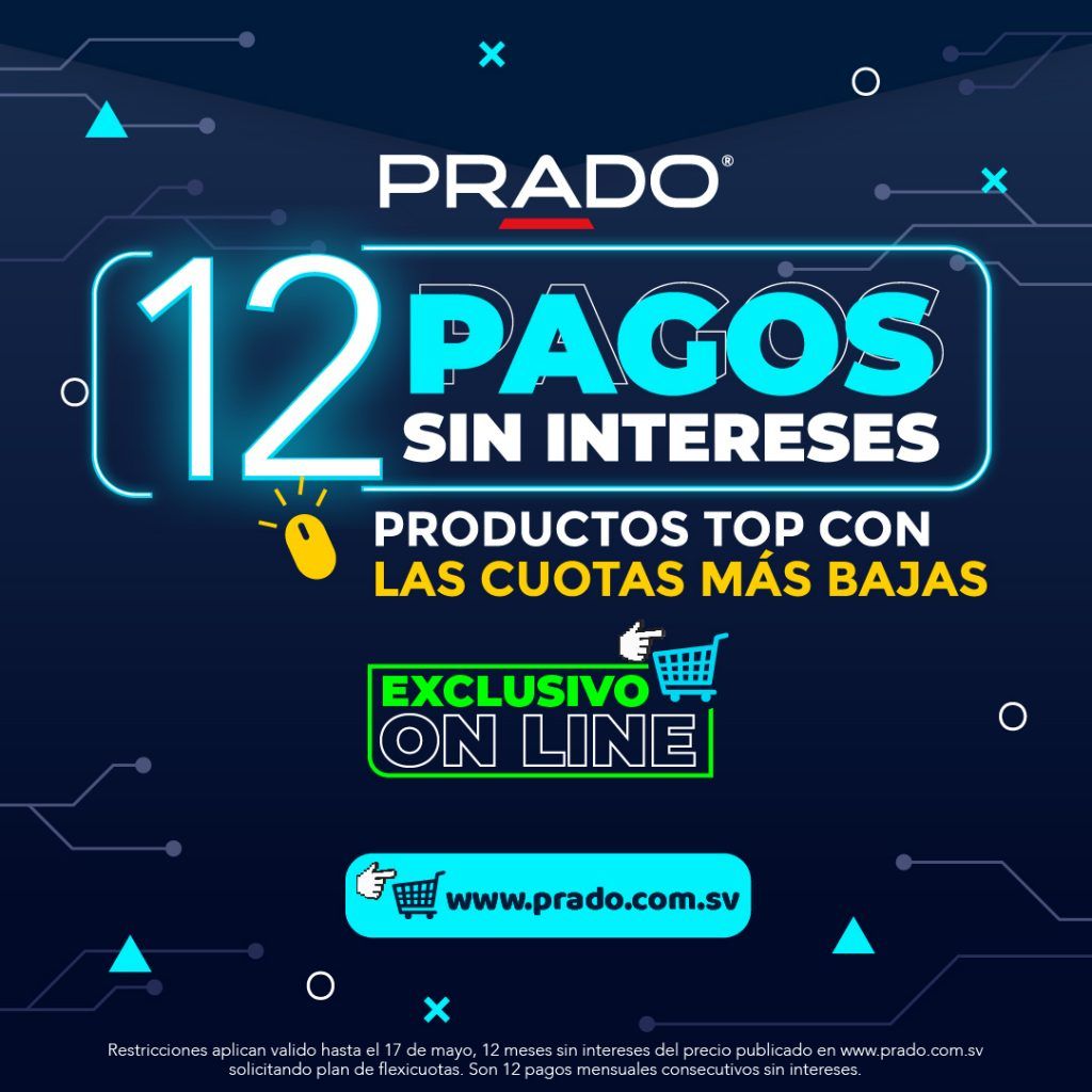 12 pagos Sin Intereses Exclusivo Online con PRADO El Salvador – 13 Mayo