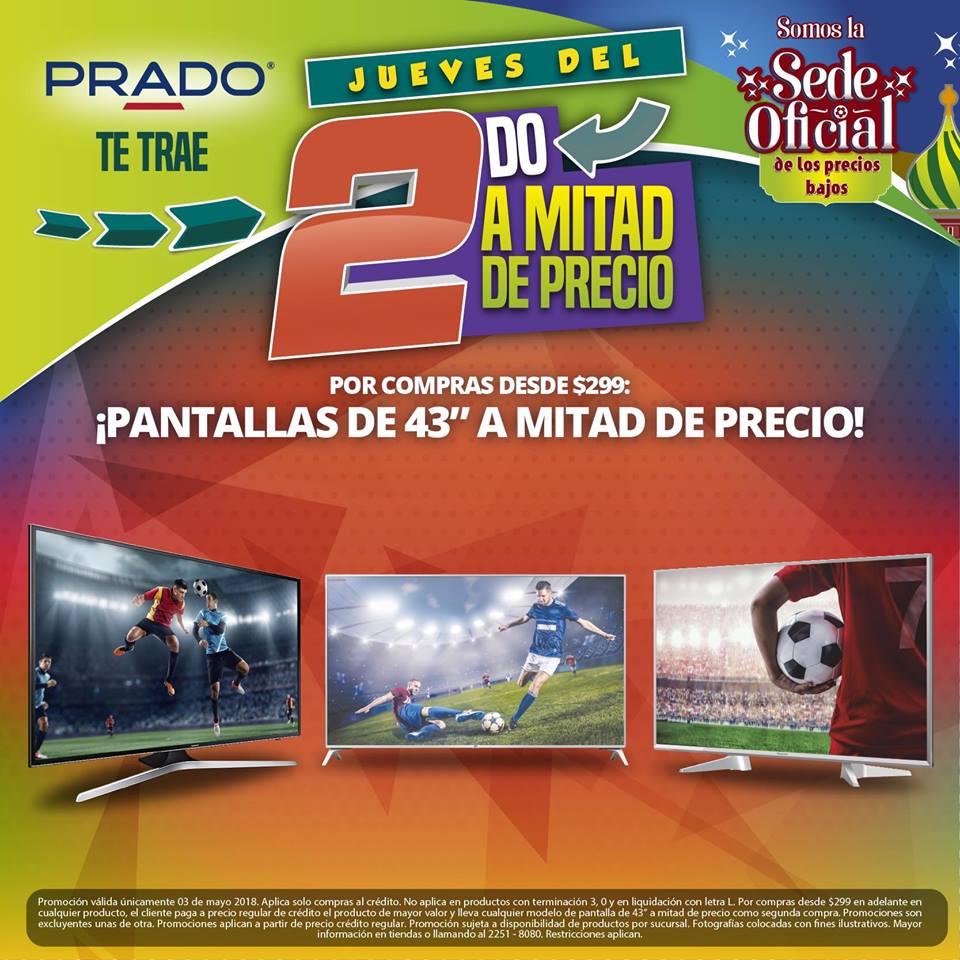 ????⚽️ ¡Solo HOY en #PRADO! Llévate tu Pantalla de 43″ a Mitad de Precio por compras desde $299. ???????? Visítanos o llámanos al 2251-8080 para comprar desde tu hogar. ????????