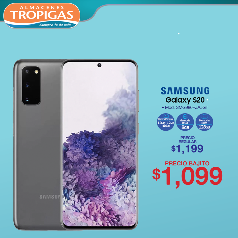 Llévate tu SAMSUNG S20 a PRECIO ESPECIAL DE PRE-VENTA. En#AlmacenesTropigas contamos siempre con cuotas chiquitas y precios bajitos.*Restricciones aplican. *Precios válidos en pre venta del 28 de febrero al 15 de marzo de 2020