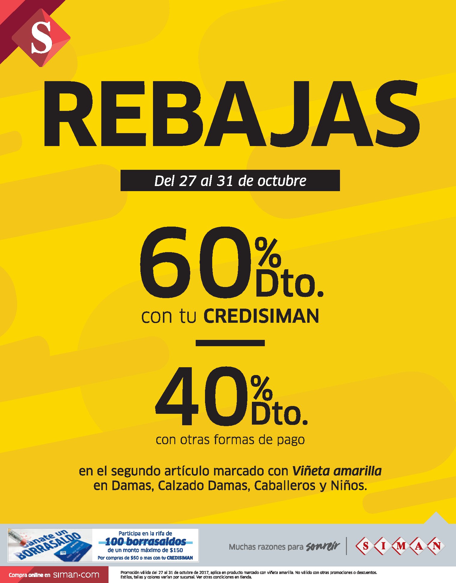ATENCION preparte a escoger los mejores productos porque SIMAN el salvador trae REBAJAS y precios especiales para despedir el mes de OCtubre de 2017. Si aun no tienes una tarjeta credisiman podriads perderte estas ofertas de viñeta amarilla