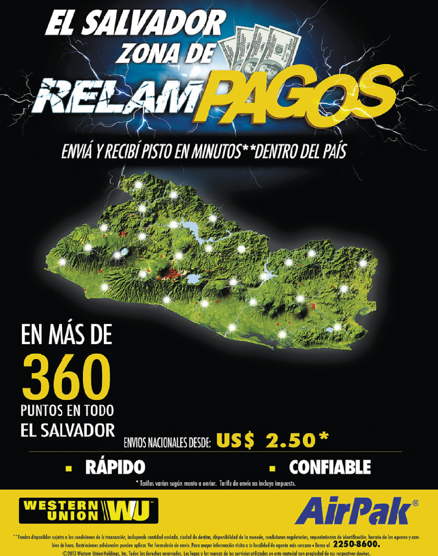 * Envia y recibe dinero dentro de El Salvador AIRPAK y Western Unio