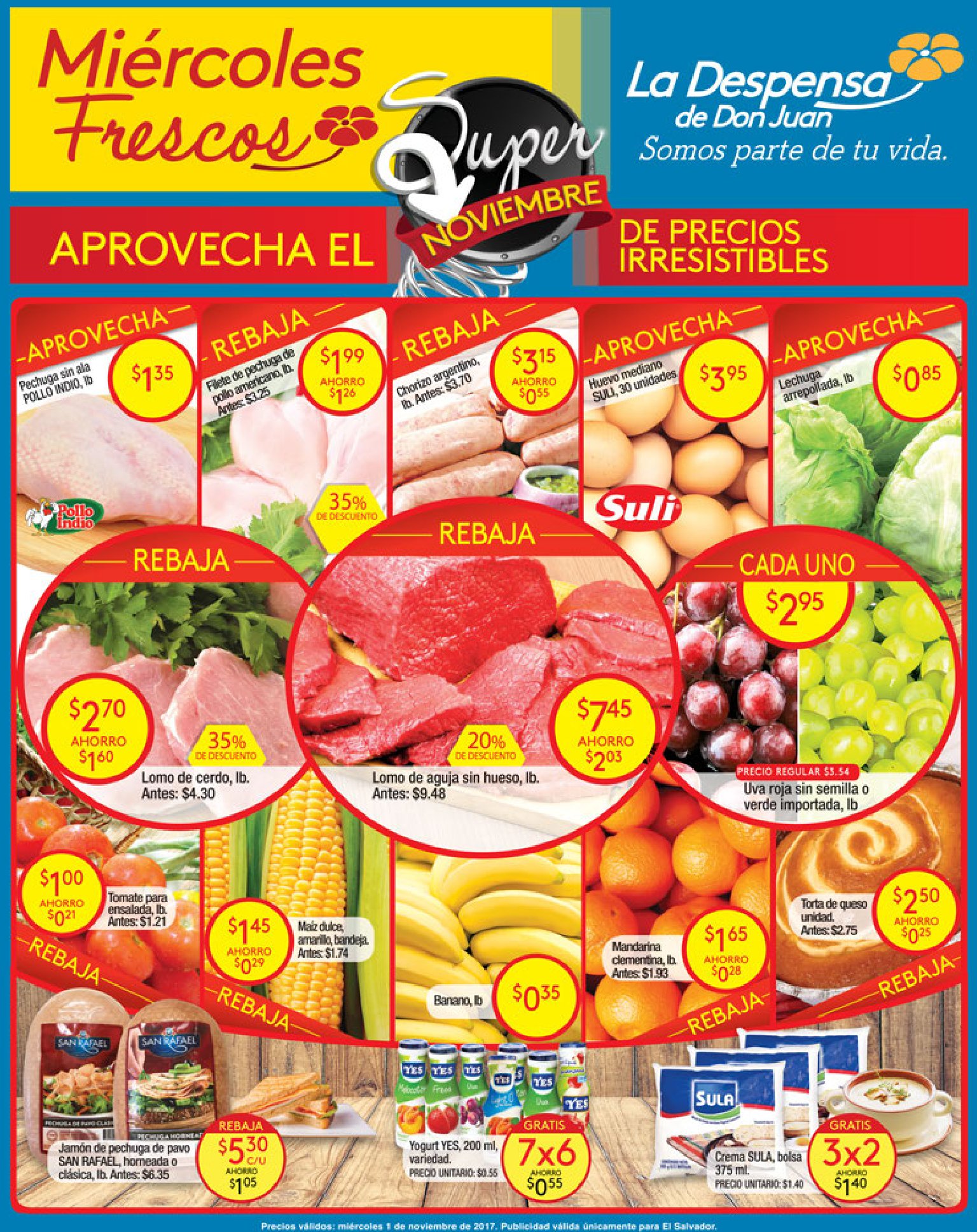 Este miercoles 01 de noviembre lo iniciamos con muchas ofertas y promociones frescas de la despensa de don juan y super selectos, ademas interesantes descuento para celebrar este fin de semana largo si te vas a tomar y hacer puente. compartelo con tus amigos. saludos y a ahorrar.