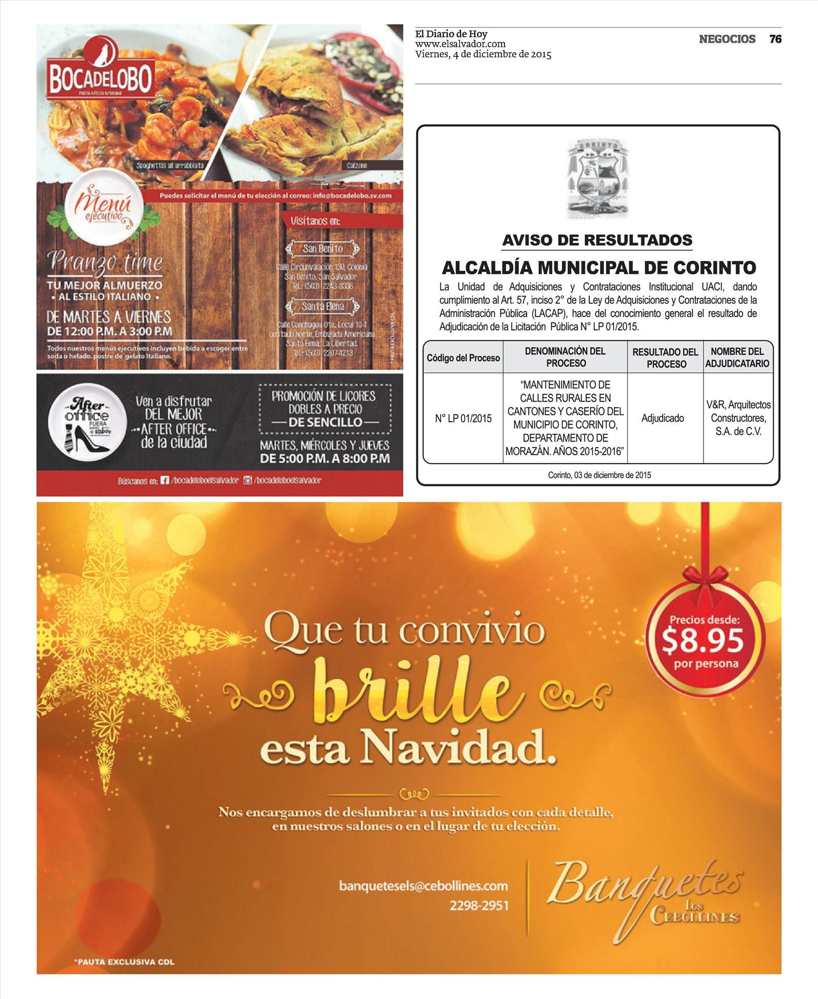 Promocion de Banquetes de navidad 2015 LOS CEBOLLINES catering