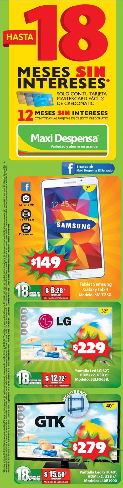 Tablet y televisor nuevo con las 18 cuotas sin intereses de maxci despensa.