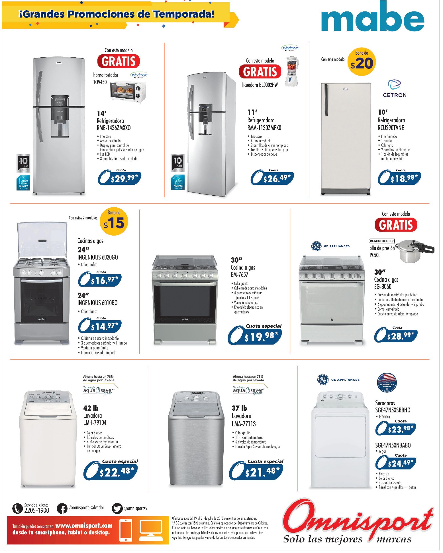 Promociones en OMNISPORT electro y linea blanca (Julio 2018)