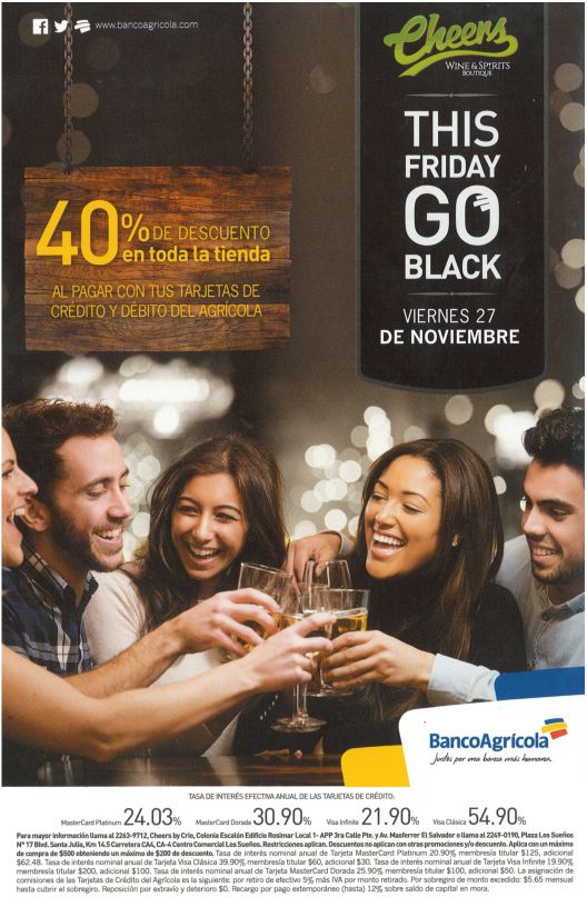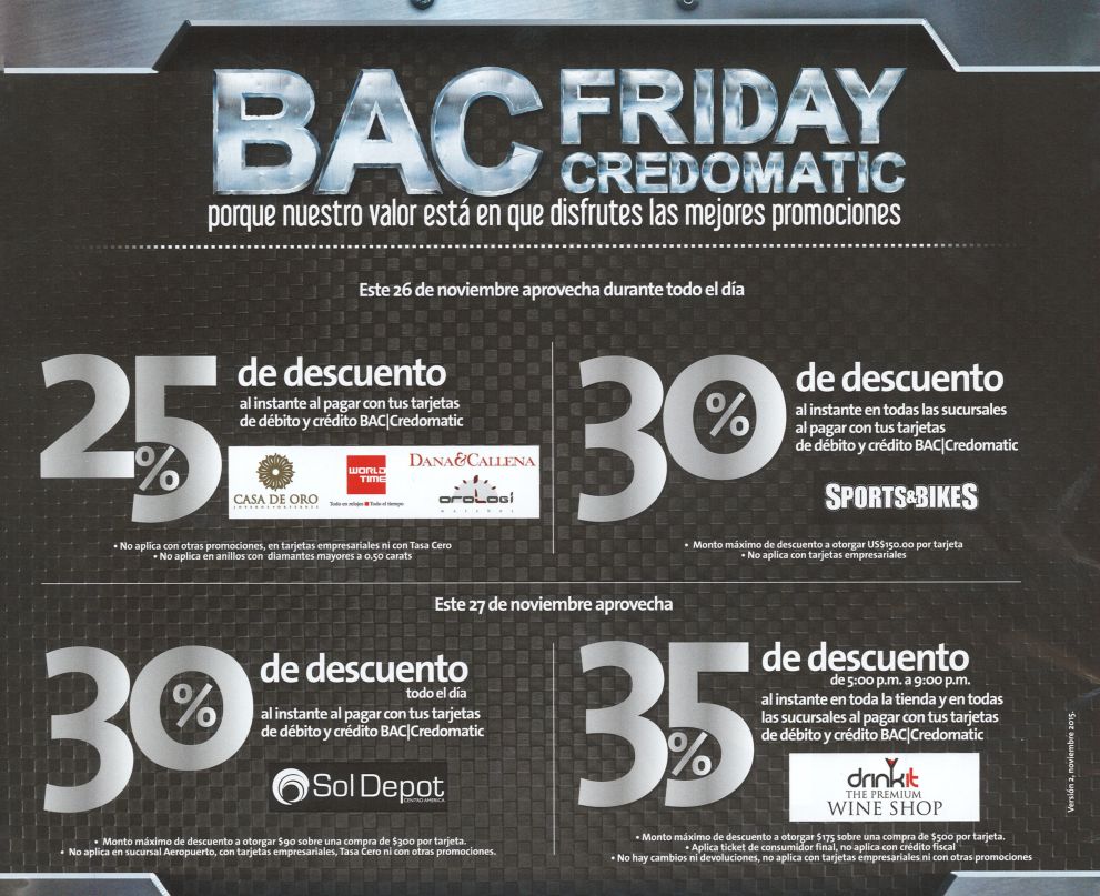 Un consejo importante para realizar tus compras locales, internacional o en linea; es verificar la disposiciones de tu cuenta relacionados con tu tarjeta de debito o tarjeta de credito. TOMAR en cuenta que algunos sistemas de pagos online o via POST podrian fallar dada la saturación de transacciones que el sistema financiero atravesará el dia de mañana con la fiebre del viernes negro y nos es para menos tenemos a nuestra disposicion cientos de anuncion de BLACKFRIDAY ads and black deals.
