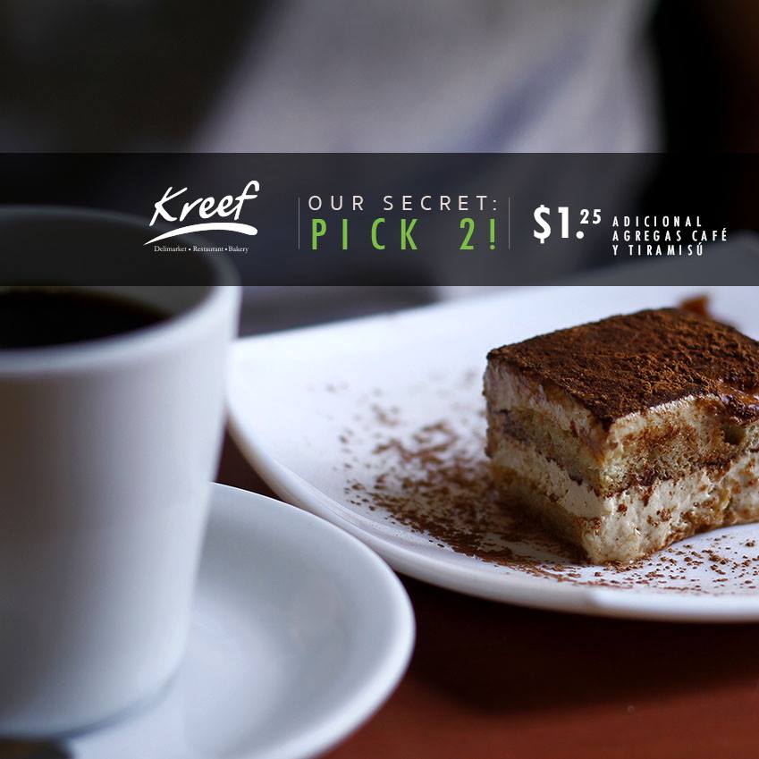 ¿Eres de los que siempre pide postre al terminar de comer? Entonces, después de disfrutar de nuestro Pick 2 + 1.25 adicional agregas café y tiramisú.