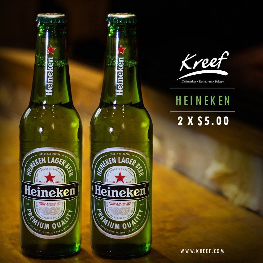 Porque sabemos que es difícil decidir entre dos de nuestros deliciosos platillos, te ofrecemos el Pick 2!, por $8.00, con el que puedes seleccionar dos de cuatro deliciosas opciones. Promociones KREEF sv – DINNER for TWO – (Marzo 2017). Porque en Kreef te ayudamos a cumplir la dieta, te ofrecemos una gran variedad de jugos naturales. En Kreef te consentimos el doble, ven y aprovecha nuestra promoción de dos Heineken por solo $5.00. ¡Te esperamos!