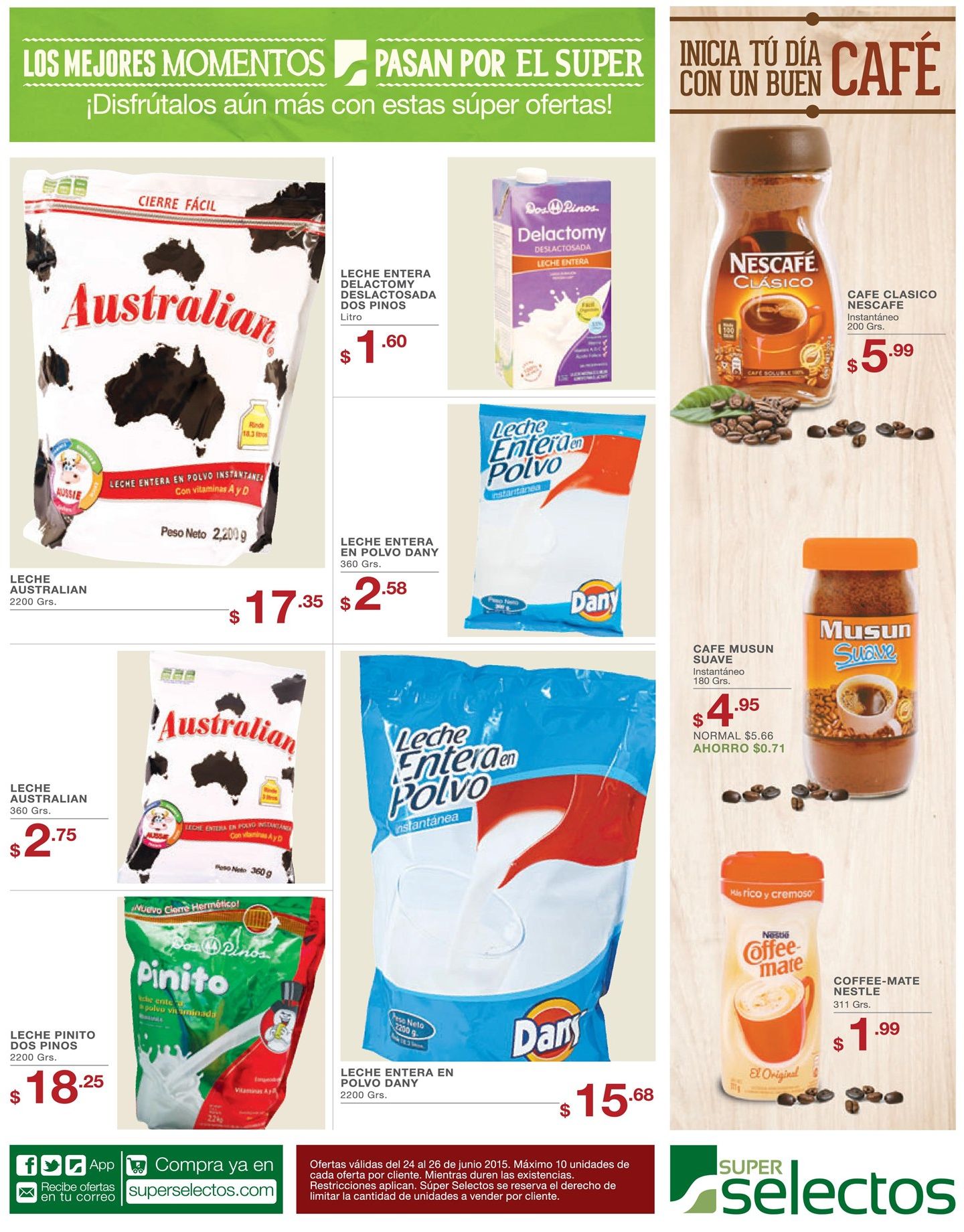 «Compra frescura y calidad en frutas y verduras LA DESPESA – 24jun15» «revista MUEJRES GANA un cambio completo de imagen» «HOT tech dad camera smartphones gadgets RAF sv» «Promociones 2×1 entratamientos de belleza ARRUGAS FLACIDEZ ACNE» «Descuentos al comprar en super selectos – 24jun15» «Productos llenos de ofertas en super selectos – 24jun15» «Ofertas en cafe instantaneo y leche entera instantanea – 24jun15»
