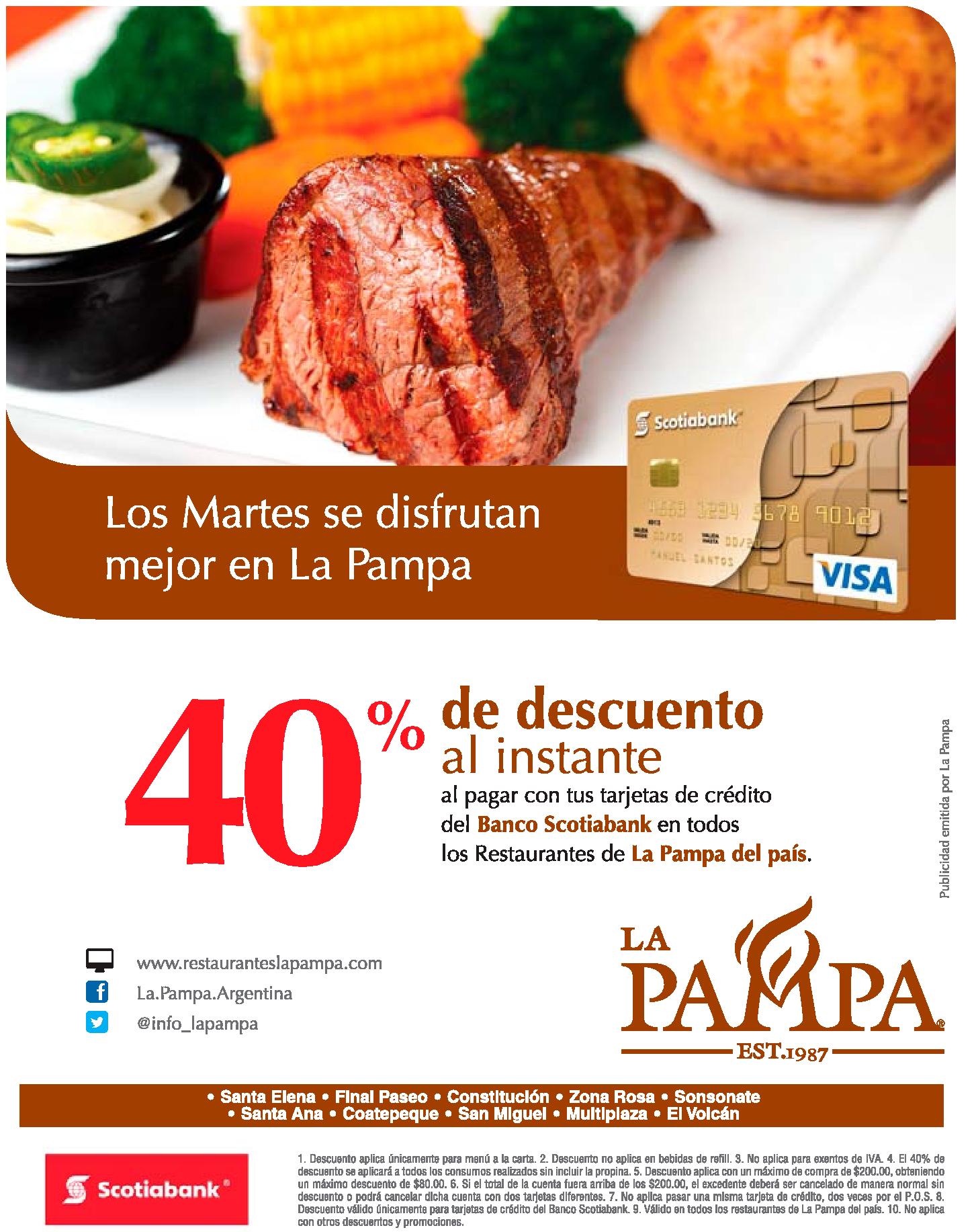 Al instante 40 off en tu consumo LA PAMPA ahora martes. Promciones de PIZZA HUT los martes 2×1. Promocion SOLO PARA COMOLOTODOS all you can eat de PAPA JOHNS. Que siga la fiesta con la promocion POLLO CAMPESTRE 2×1. Martes de buen sabor con promociones en restaurantes (29-mar-16). Tropigas Ofertas de fin de mes con electrodomesticos BARATOS. Tus compras en RADIOSHACK traen premios y muchos dinero. Tus frutas y verduras para tus jugos y meriandas con descuento. Ultimos dias TELEPIZZA promociones doble.