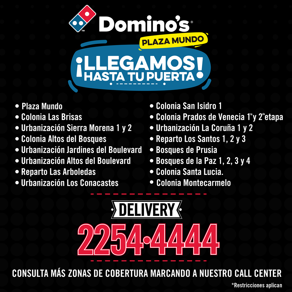 Cobertura del servicio a domicilio de DOMINOS pizza el salvador.