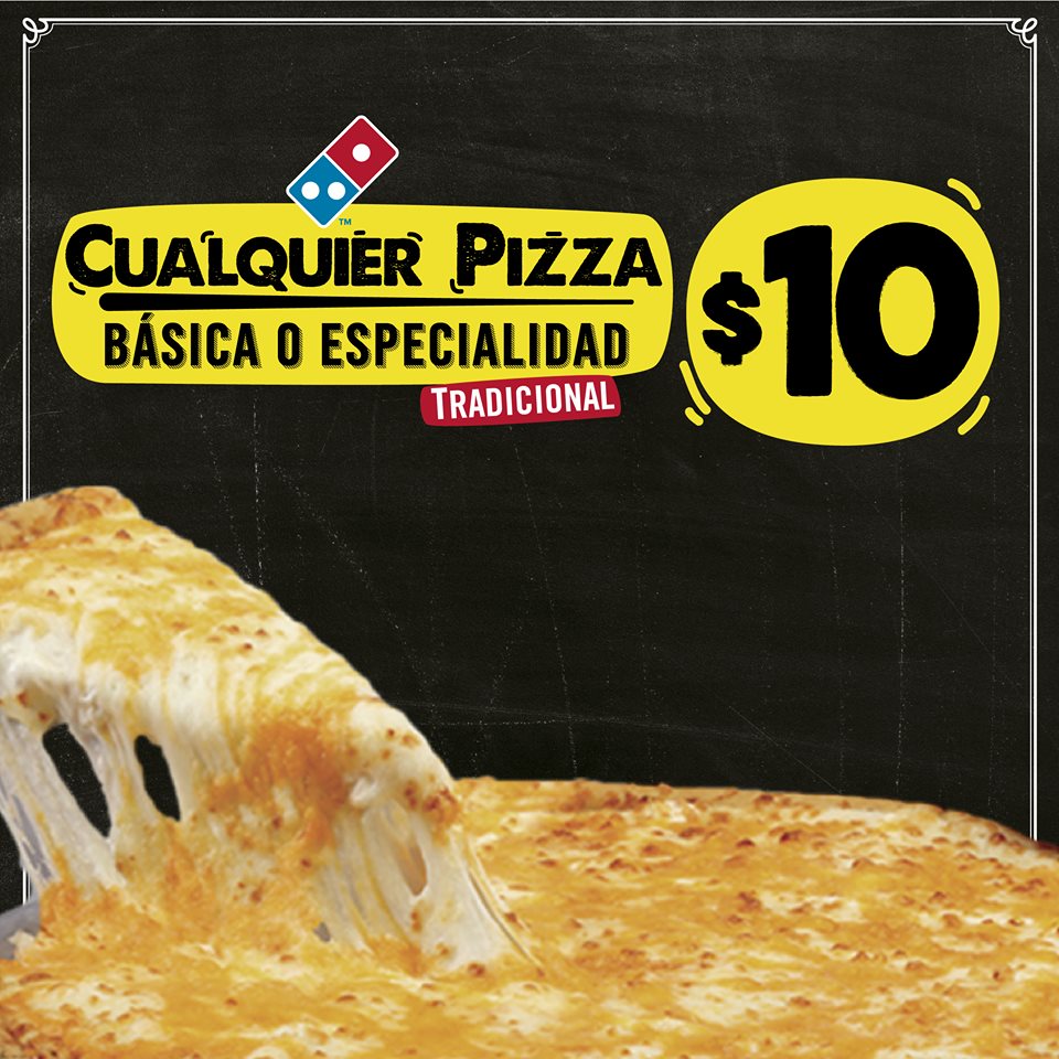 DOMINOS pizza promocion 10 por cualquier pizza.