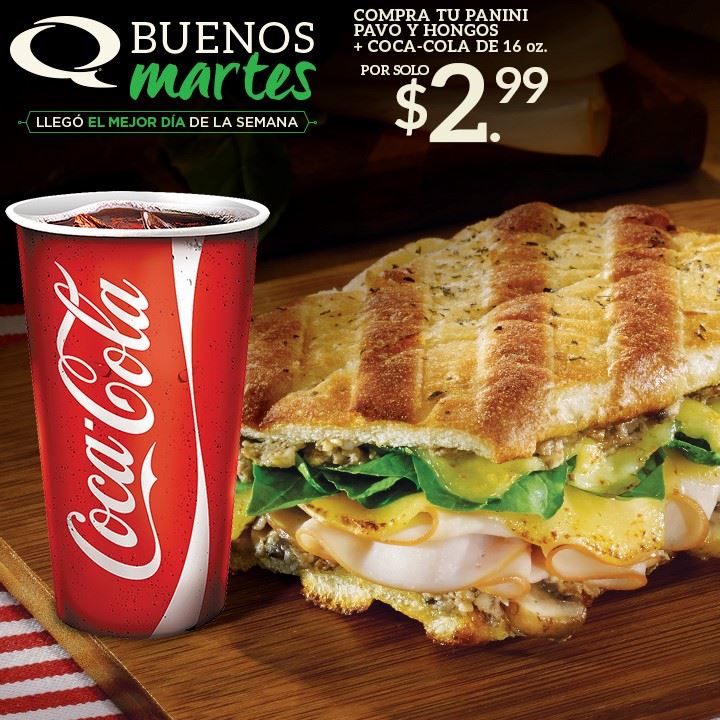 QUIZNOS promocion de Panini Pavo y Hongos mas coca cola – 29mar16.