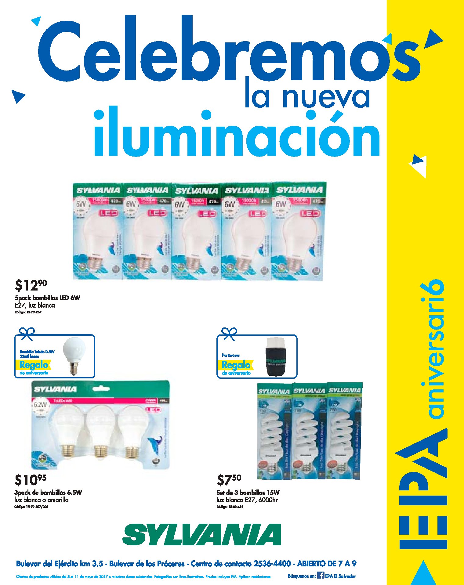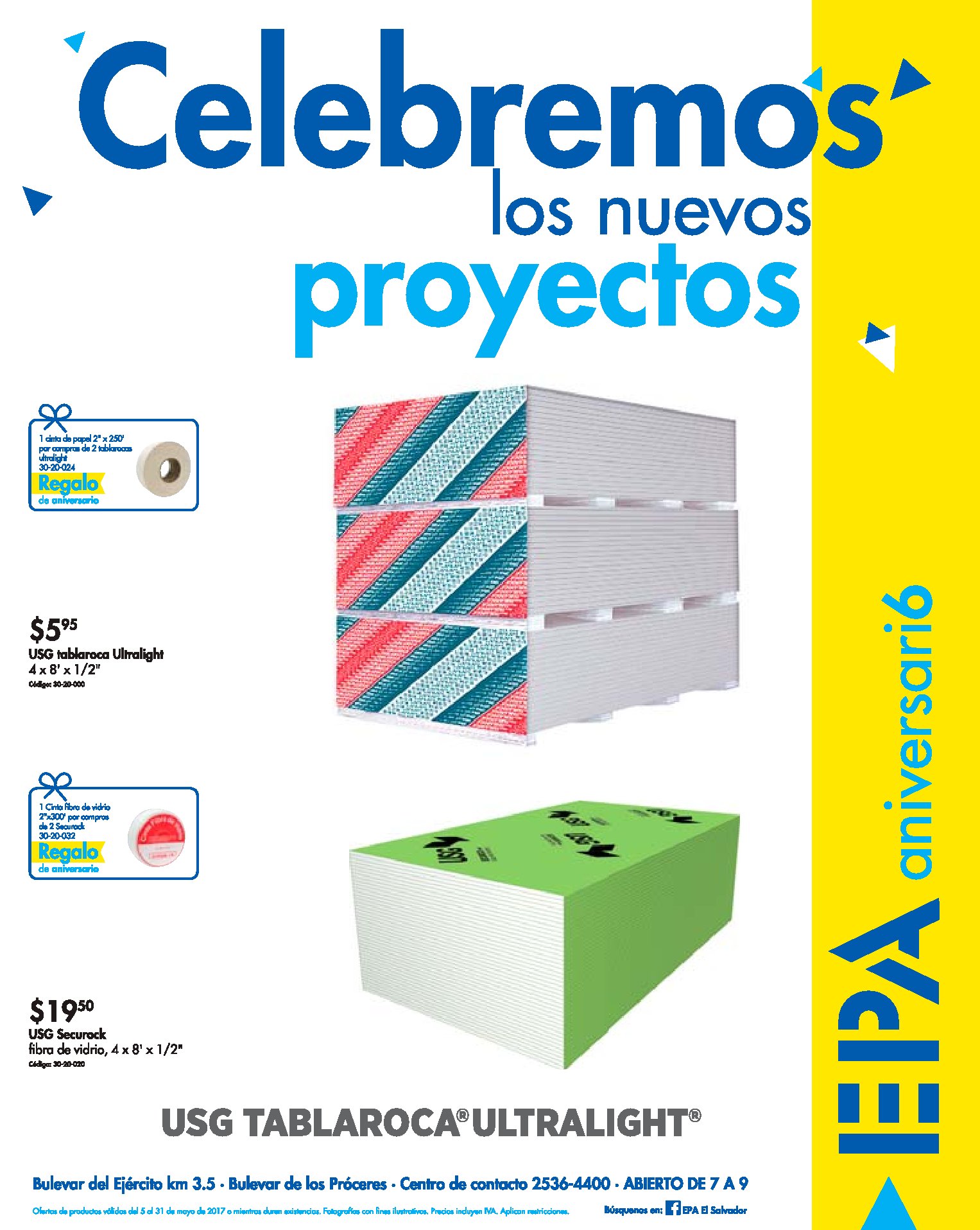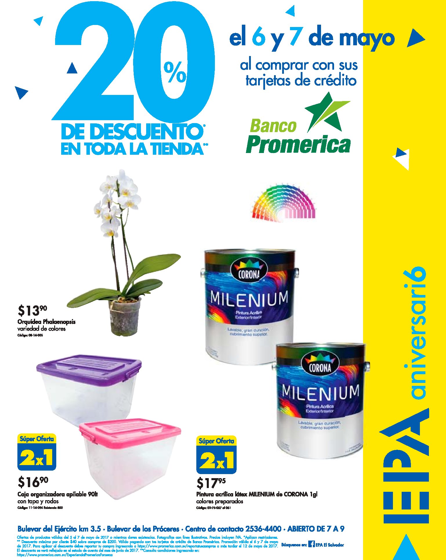 Este fin de semana FERRETERIA EPA SV te espera para celebrar juntos su aniversario nuemero 6, porque hay muchos descuentos y promociones especiales. Ademas si pagas con tarjetas del banco promerica accedes a descuentos.