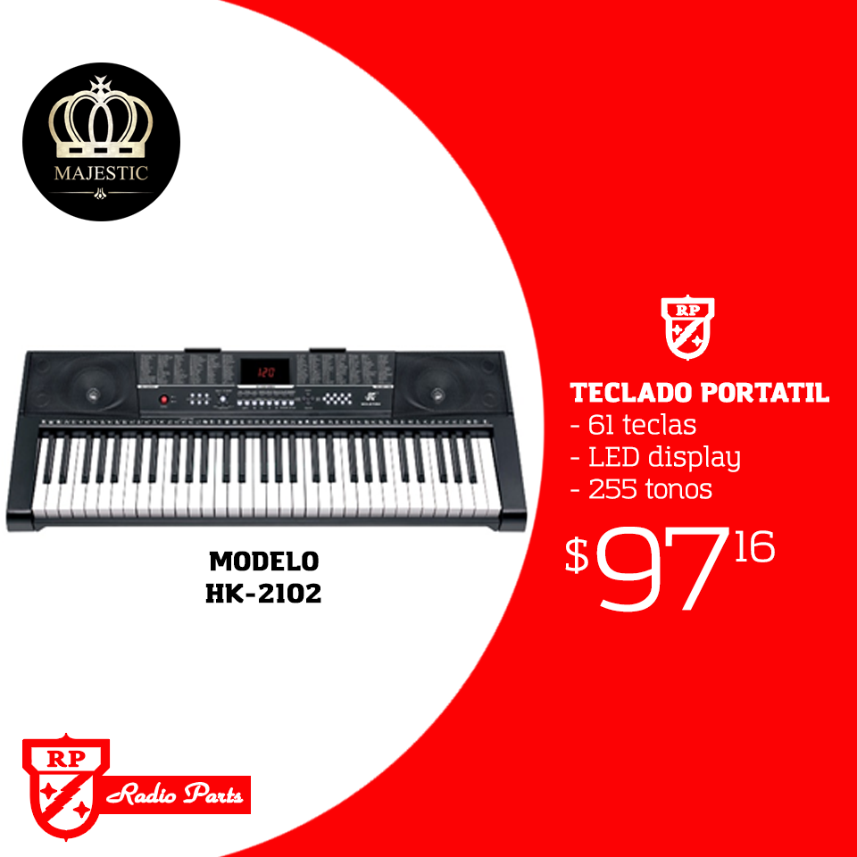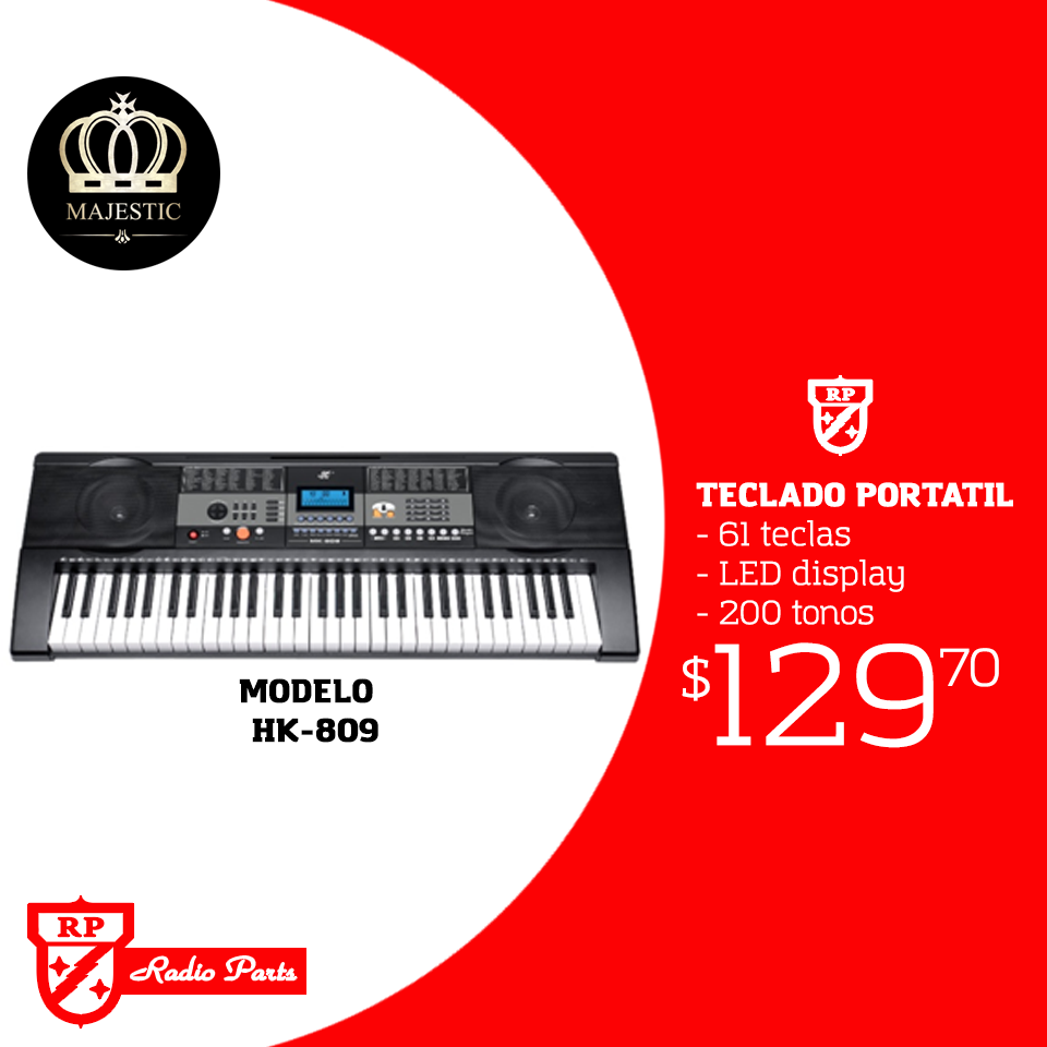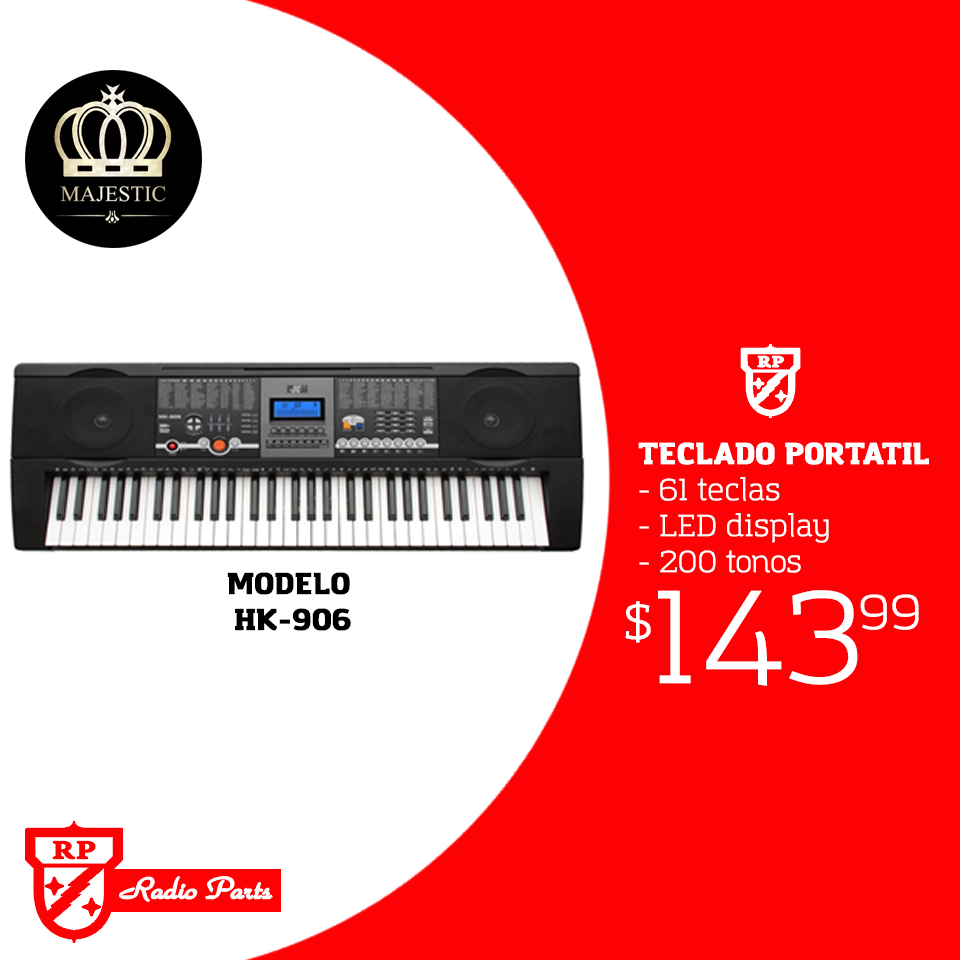 Radio Parts – Teclado portatil de 61 teclas marca MAJESTIC