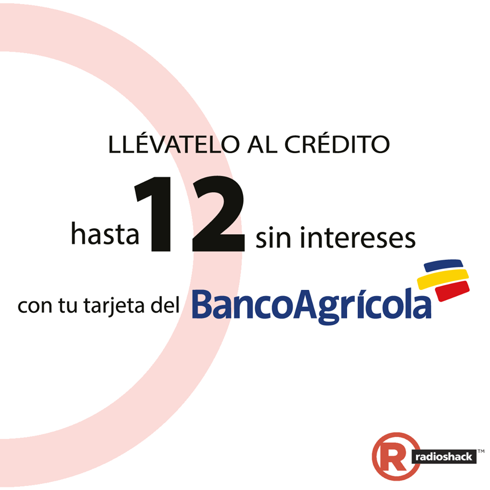 - radio shack promocion 12 cuotas tasa cero con banco agricola
