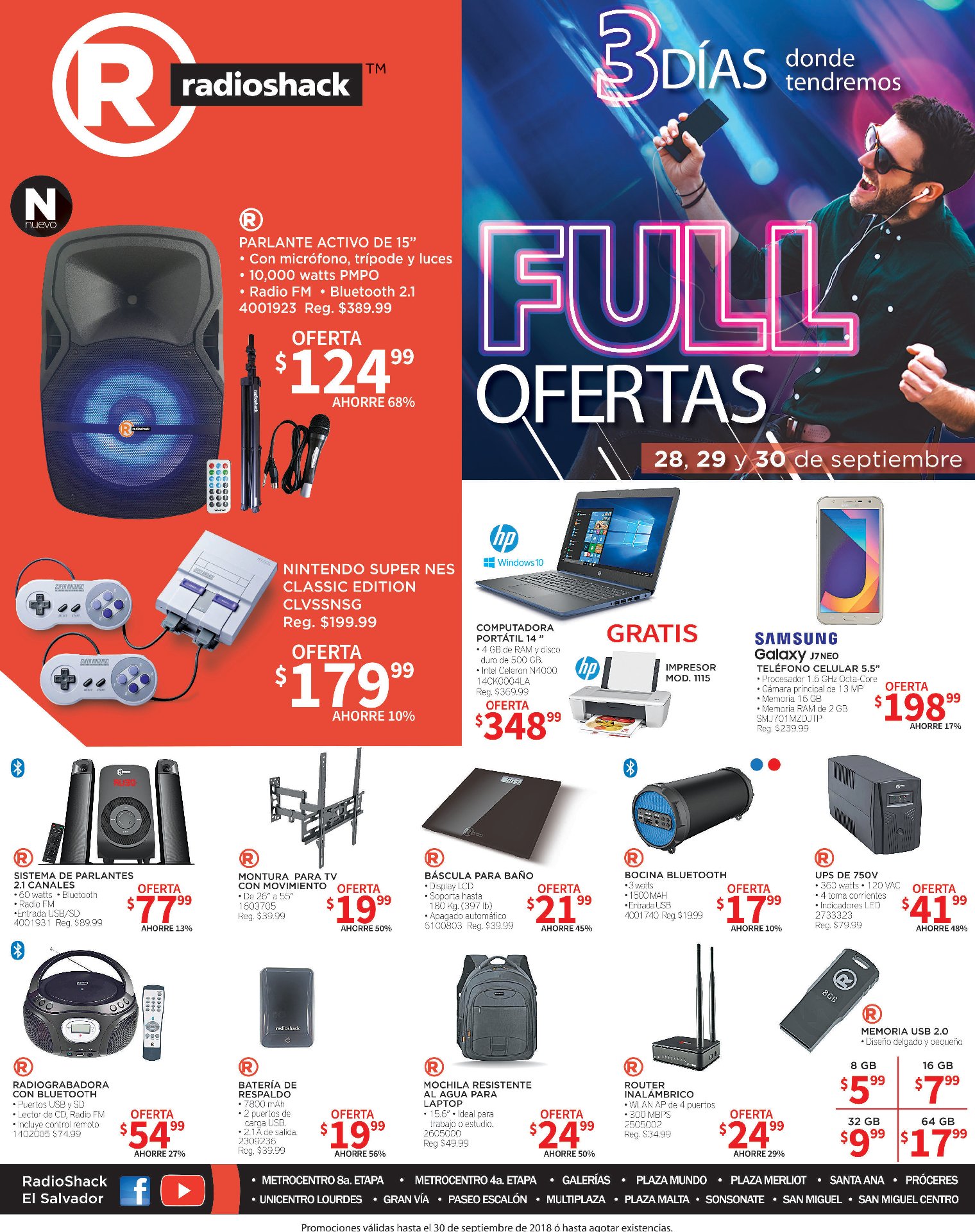 RADIOSHACK Technology deals 3 dias de ofertas [Septiembre 2018] por admin · septiembre 28, 2018 ATENCION tiendas radioshack el salvador especializadas en gadgets tecnologicos quiere despedir el mes de septiembre 2018 con 3 dias de promociones y descuentos en sus prodcutos geek. Radioshack sv FULL ofertas para cerrar septiemre 2018