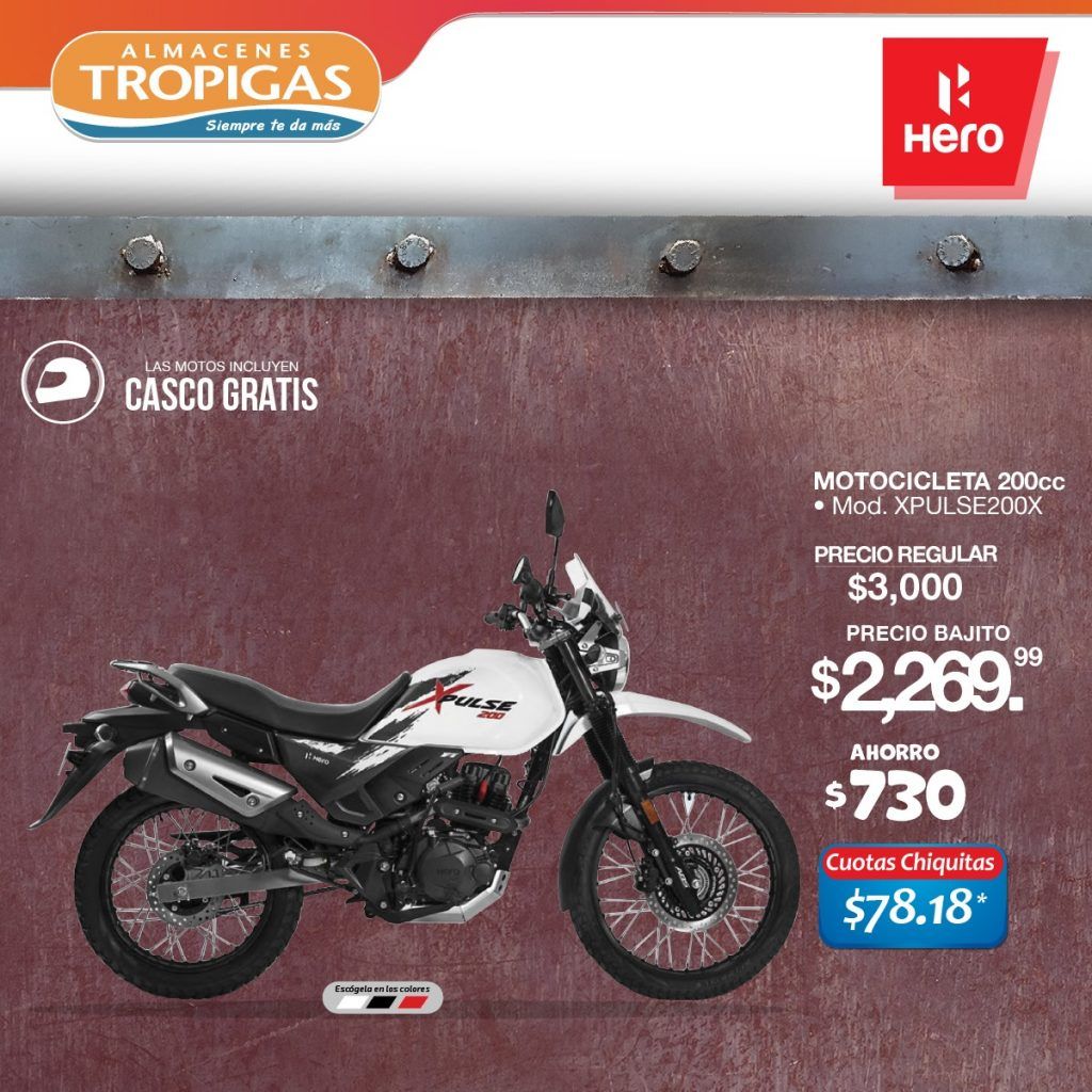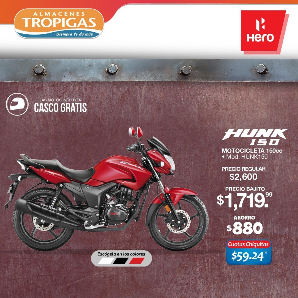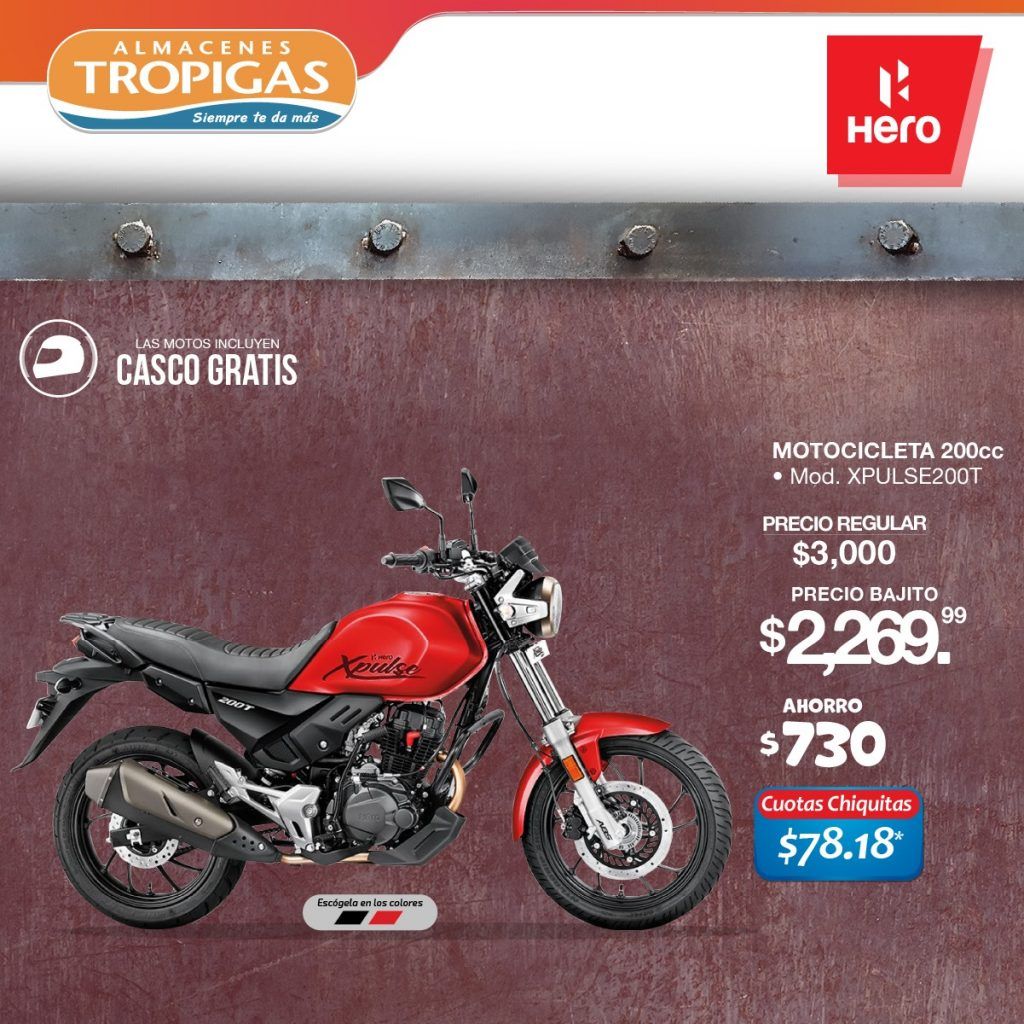 «Catalogo de motos HERO con precio black friday 2021» «Motocicleta classic X PULSE 200 T cc ofertas almacenes tropigas noviembre 2021» «Motocicleta HUNK 150 cc ofertas almacenes tropigas noviembre 021» «Motocicleta HUNK 160 cc ofertas almacenes tropigas noviembre 2021» «Motocicleta X PULSE 200 cc ofertas almacenes tropigas noviembre 2021»