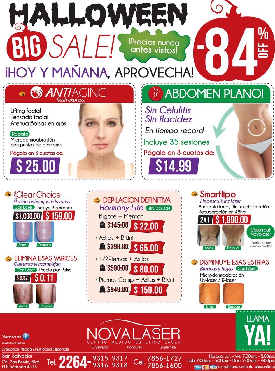HALLOWEEN beauty discounts novalaser el salvador,