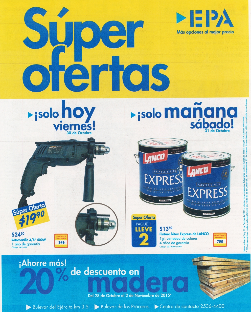 Bienvenidos al festival de precios y promociones, SALE con Descuentos ahora Oktober FRIDAY (30-oct15). Descuentos en todas tus compras y muchos productos Duplica tus compras con estas promociones Agencias WAY. el salvador INKA grill peruvian cusine, embutidos alitas epanizados medallones nuggets OFERTAS supermercado, Es hora de buscar precios bajos en la despensa familiar Este fin de comamos pizza al 2×1, Este viernes segundo articulo con 75% OFF en super selectos Festival de nutricion especializada gracias a super selectos, fiesta de fin de semana bebidas en oferta la despensa de don juan , Fin de semana largo para comprar zapatos MD, HALLOWEEN beauty discounts novalaser el salvador, HOY gracias a EDH 2×1 boletos R3HAB , indufoam descuentos muebles camas descanso garantizado, LA CURACAO CRAZY SALE Locura de precios y descuentos
