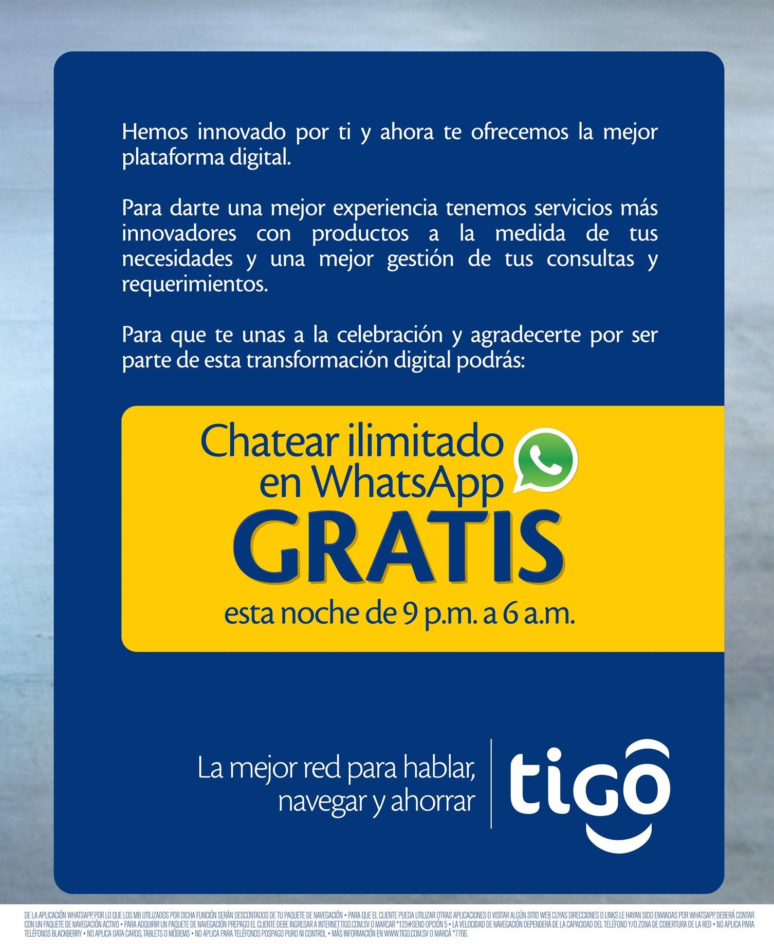 Ahora TODA la noche WHATSAPP GRATIS en tu movil TIGO – 13ago15