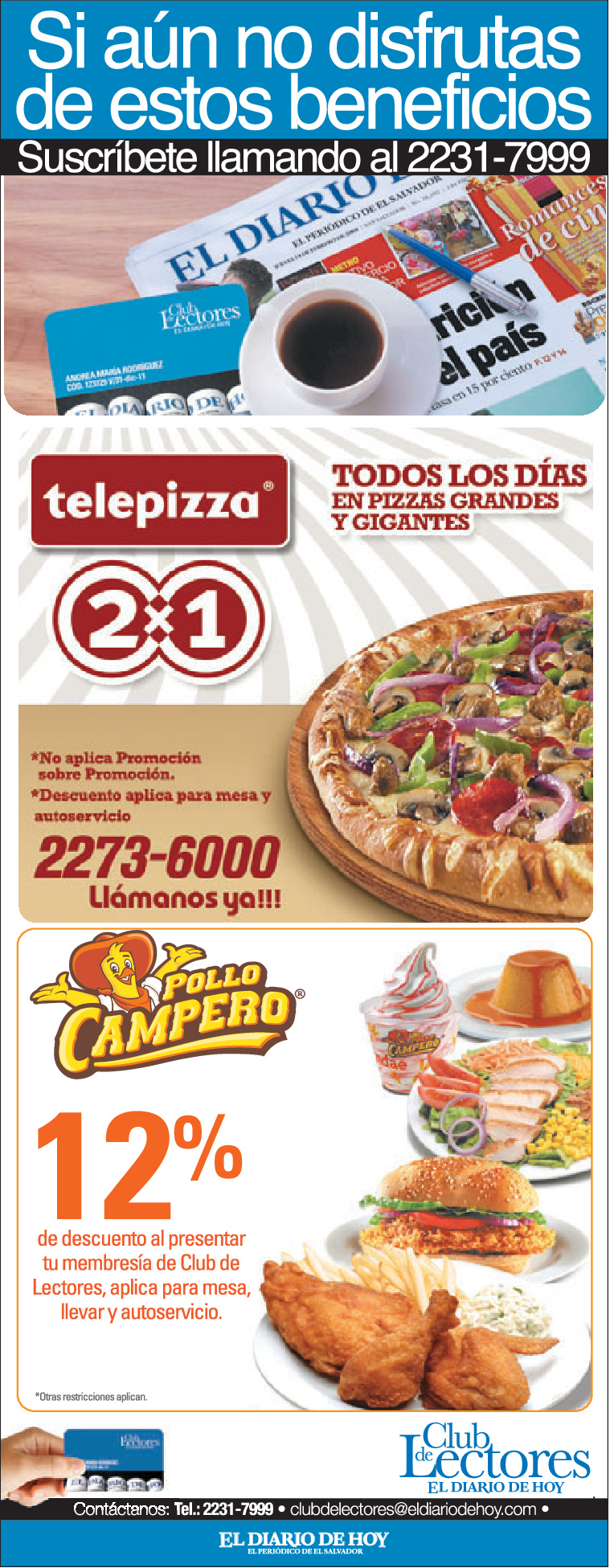 * Descuentos pollo campero y telepizza club de lectores
