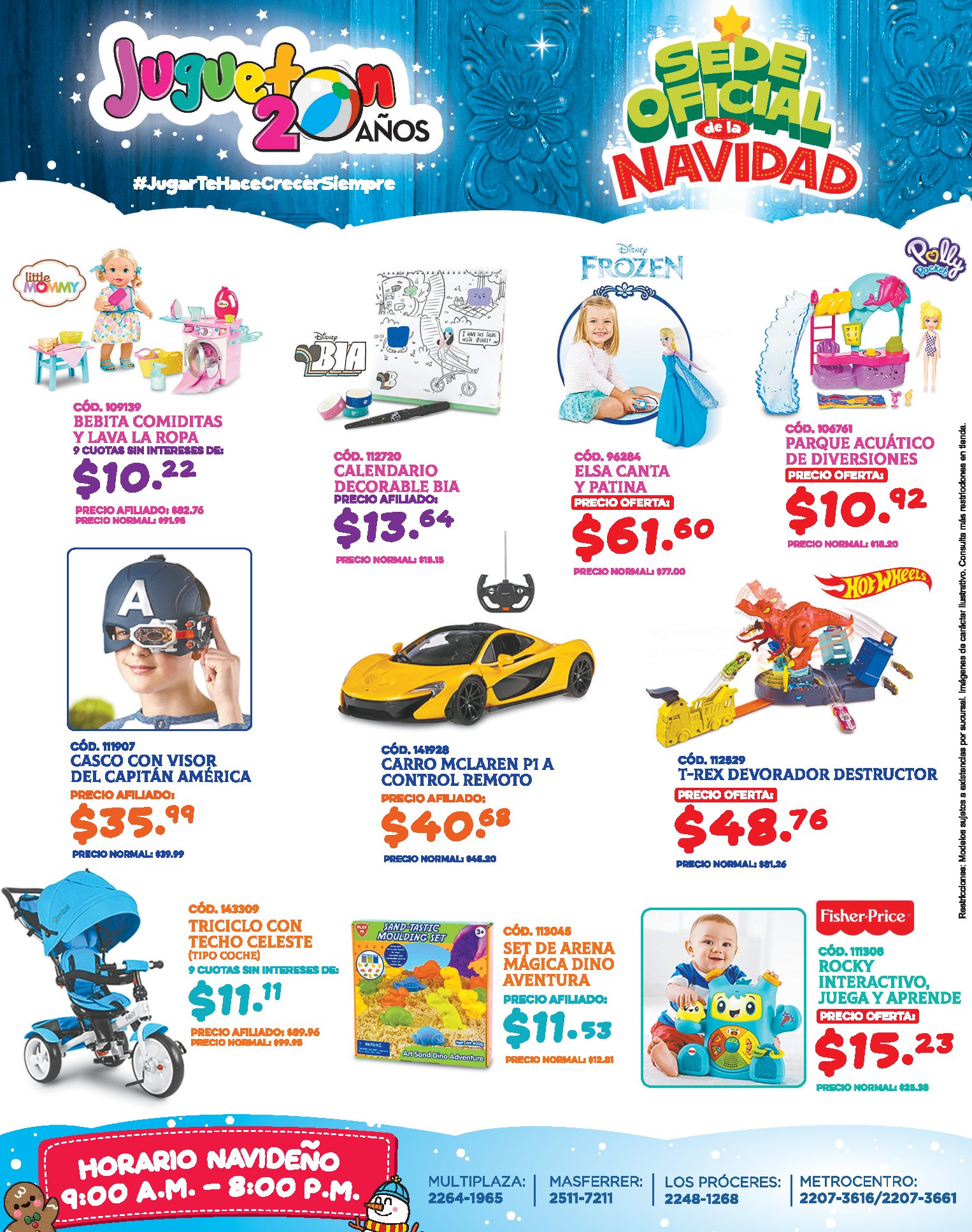 HORARIOS DE ATENCIÓN jugueton el salvador