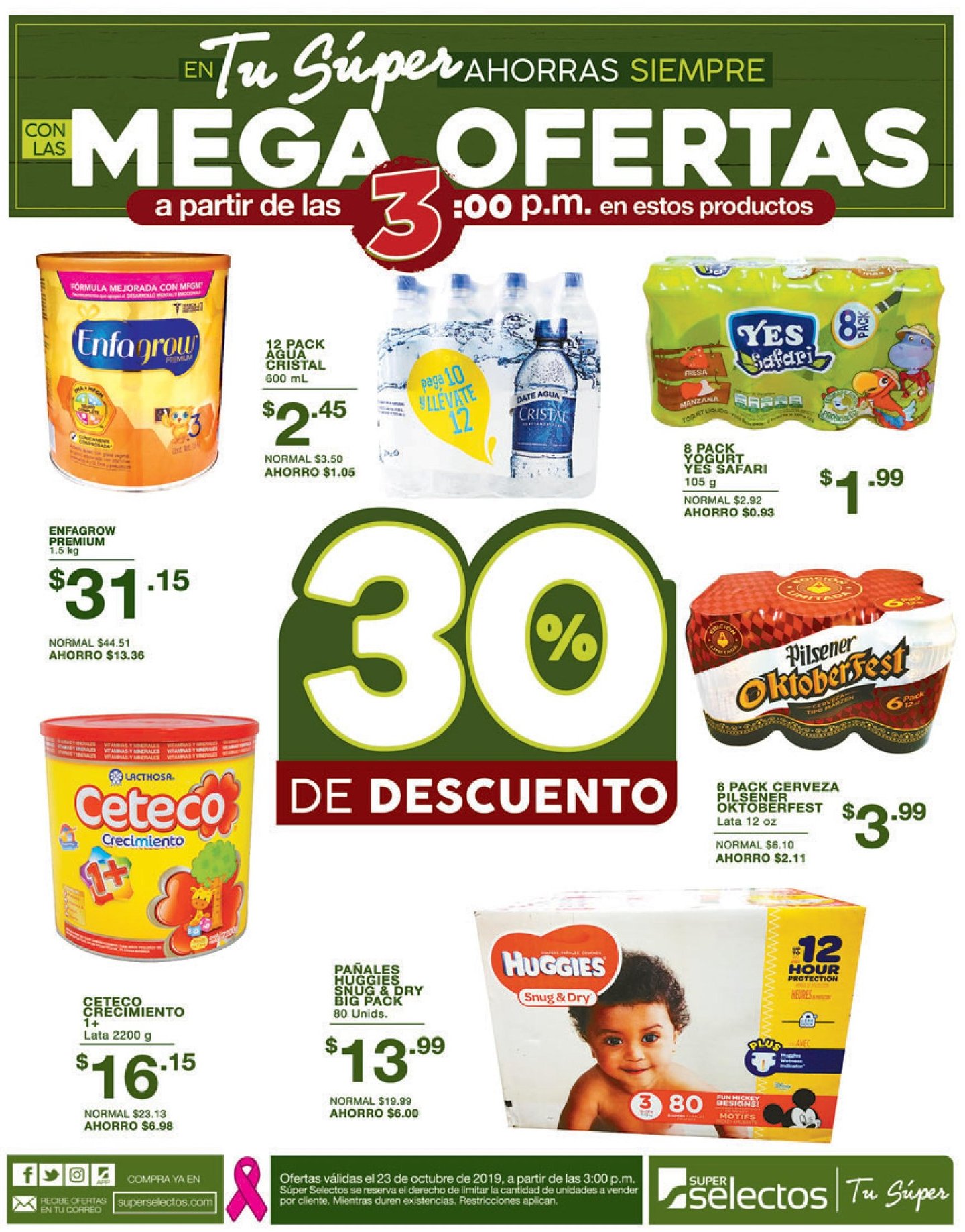 ¡Aprovecha estas #MegaOfertas desde las 3:00 p.m. en todos los Súper Selectos!Ofertas válidas el 23 de octubre de 2019, a partir de las 3:00 p.m. Súper Selectos se reserva el derecho de limitar la cantidad de unidades a vender por cliente. Mientras duren existencias. Restricciones aplican.