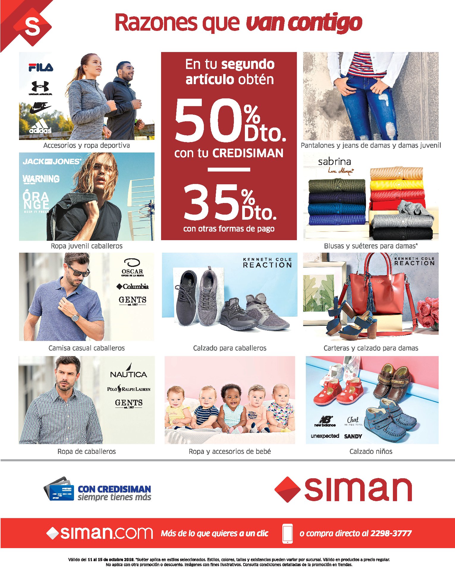 *Válido del 11 al 15 de octubre 2018. *Suéter aplica en estilos seleccionados. Estilos, colores, tallas y existencias pueden variar por sucursal. Válido en productos a precio regular. No aplica con otra promoción o descuento. Imágenes con fines ilustrativos. Consulta condiciones detalladas de la promoción en tiendas.
