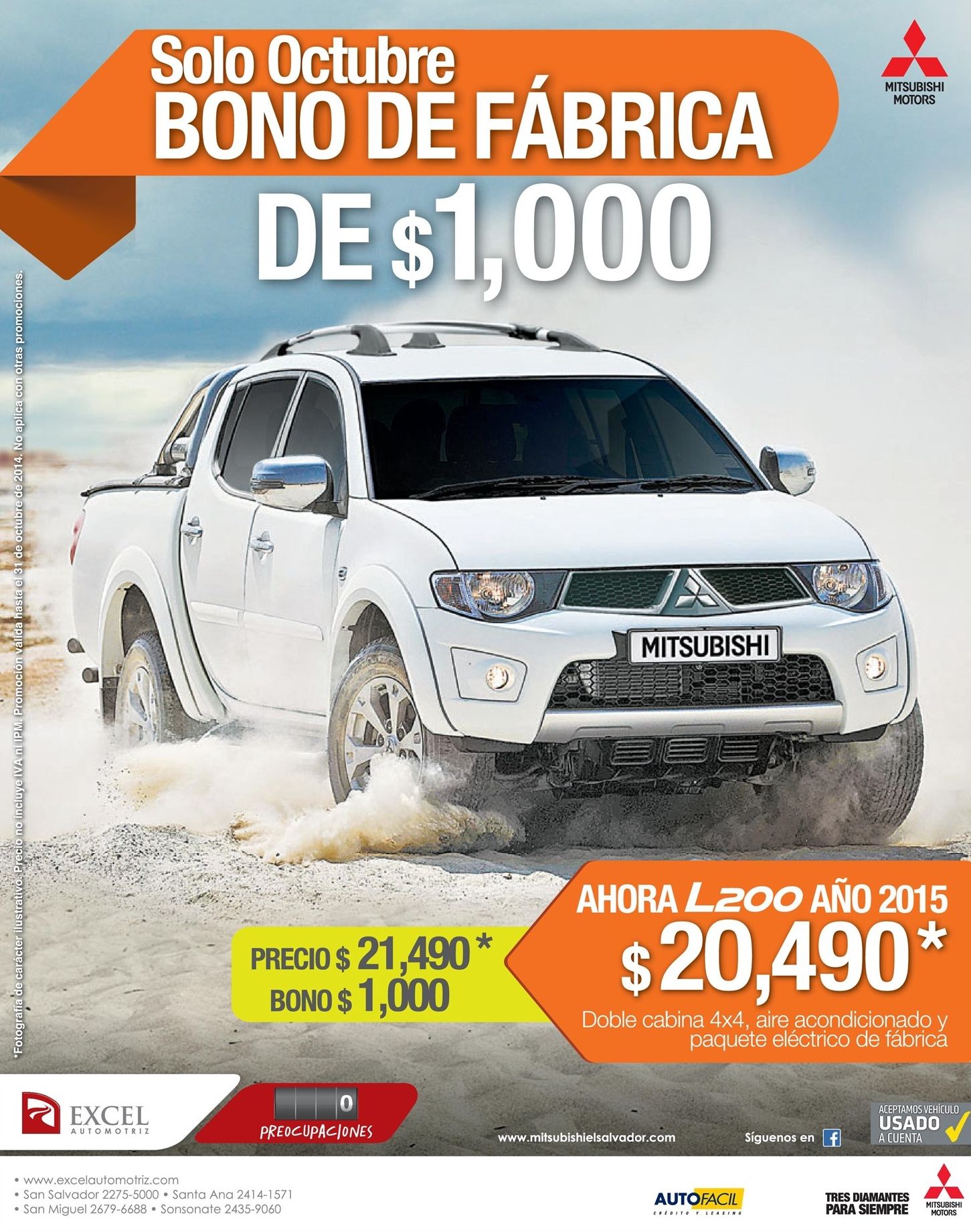 Que te parecería tener un BONO de $1000 dolares para comprar un auto MITSUBISHI, ademas consulta para tus ojos totalmente GRATIS; Soluciones para ahorrar todo los dias (09-oct-14). Encuentra ademas las ofertas del selectos asi como interesante servicios en segurida y transacciones financieras.